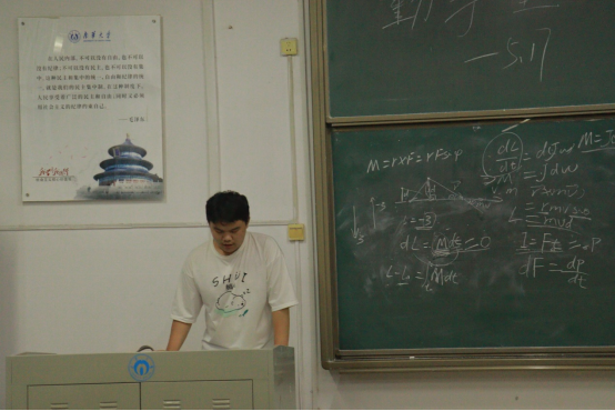 帮扶会上,杨建新同学围绕大学物理刚体这一章节的知识点为同学们分享自己在学业上的经验与心得。他以通俗易懂的语言将刚体的相关概念具象化,让同学们能更加形象地理解这一知识点,同时结合生活实际进行举一反三,促进大家对相关知识的理解。