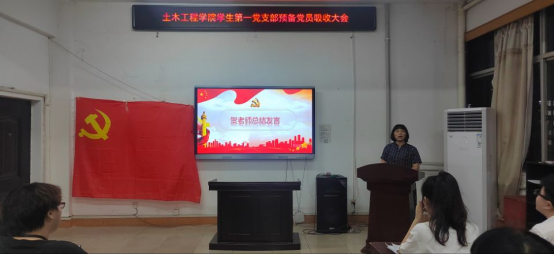 最后由贺老师总结发言。她就张钞同志的经历勉励各位党员同志,强调党员同志们要时刻牢记初心使命,感恩母校,回报社会。