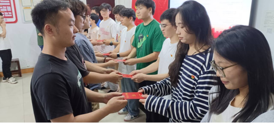 大会第二项,由邓阳、王然生等14名同志依次就个人自身情况、对党的认识、入党动机等方面进行相关发言,并由其入党介绍人介绍其相关情况,对其能否吸收入党发表意见。随后,经支部大会讨论和正式党员投票表决,对该14名发展对象是否吸收入党进行投票表决。经无记名投票决定,同意吸收邓阳、王然生等14名同志为中共预备党员。