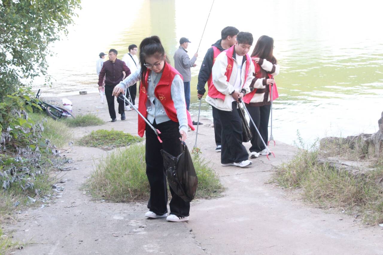 辅导员老师与青年员工党员组织开展志愿服务活动,清理母亲河周边的生活垃圾,维护清洁水源,共建绿色家园。