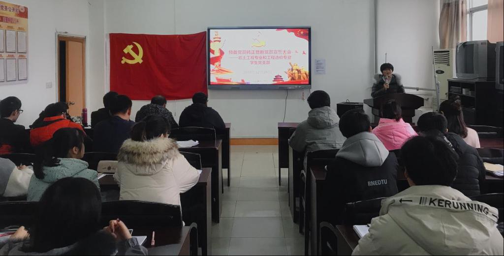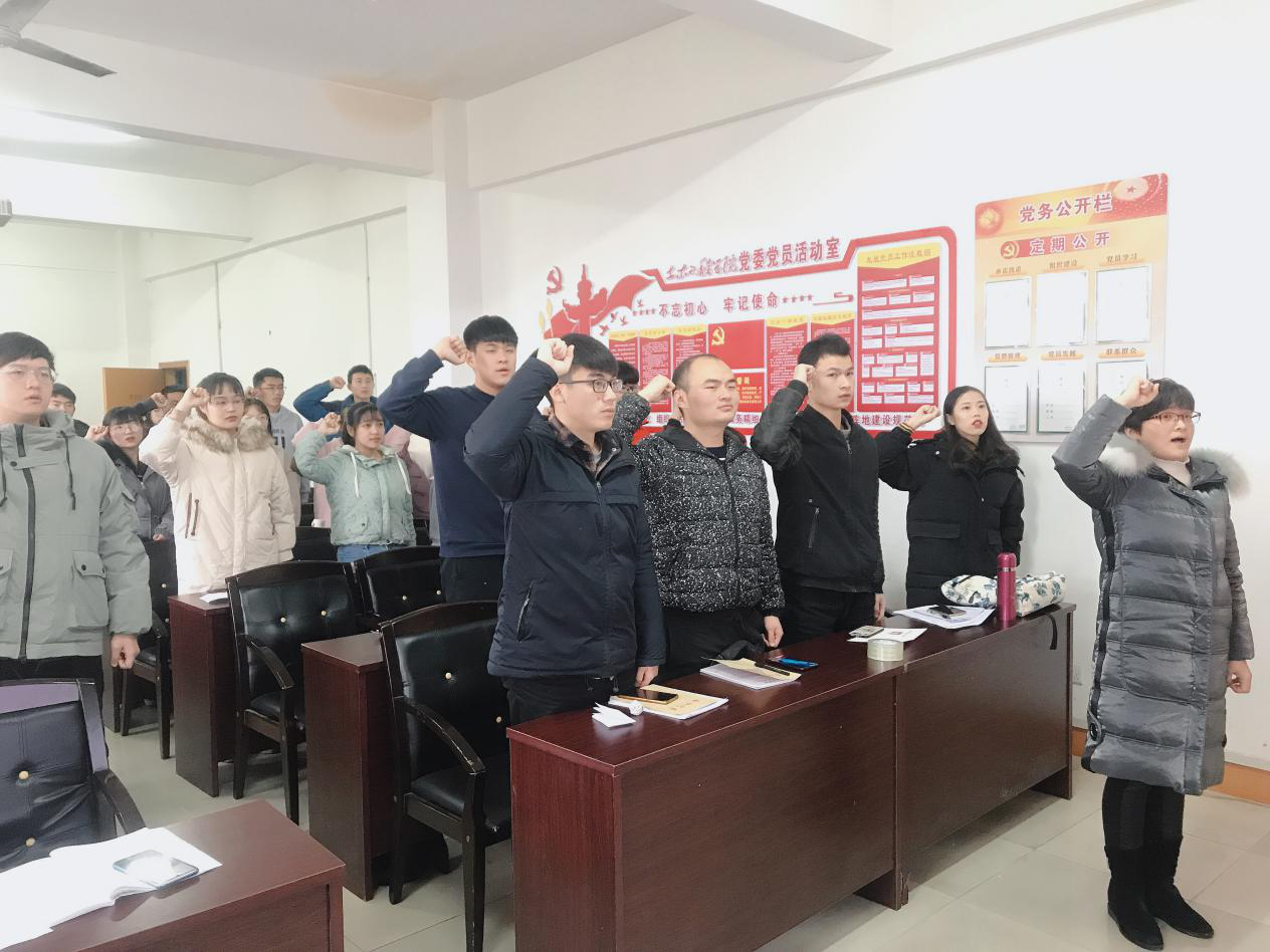 2019年12月26日上午10:20,MK体育岩土工程专业和工程造价专业员工党支部在土木楼四楼会议室召开预备党员转正暨新党员宣誓大会,会议由支部副书记刘宪丽同志主持。