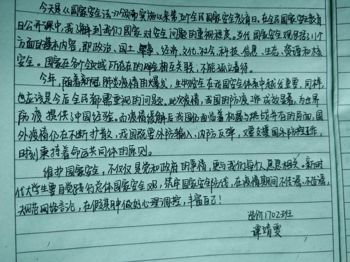 支部书记李翠新老师总结道:一场突如其来的新冠肺炎疫情让我们深切地感受到国家安全与我们每一个人息息相关。作为新时代的青年党员,要牢固树立国家安全意识,以高度的思想自觉和行动自觉维护国家安全,做国家安全的模范遵守者和坚决捍卫者,自觉遵守法律法规,坚决制止破坏国家安全的行为,坚决同破坏国家安全的行为做斗争,以切实行动践行“国家安全,人人有责”。