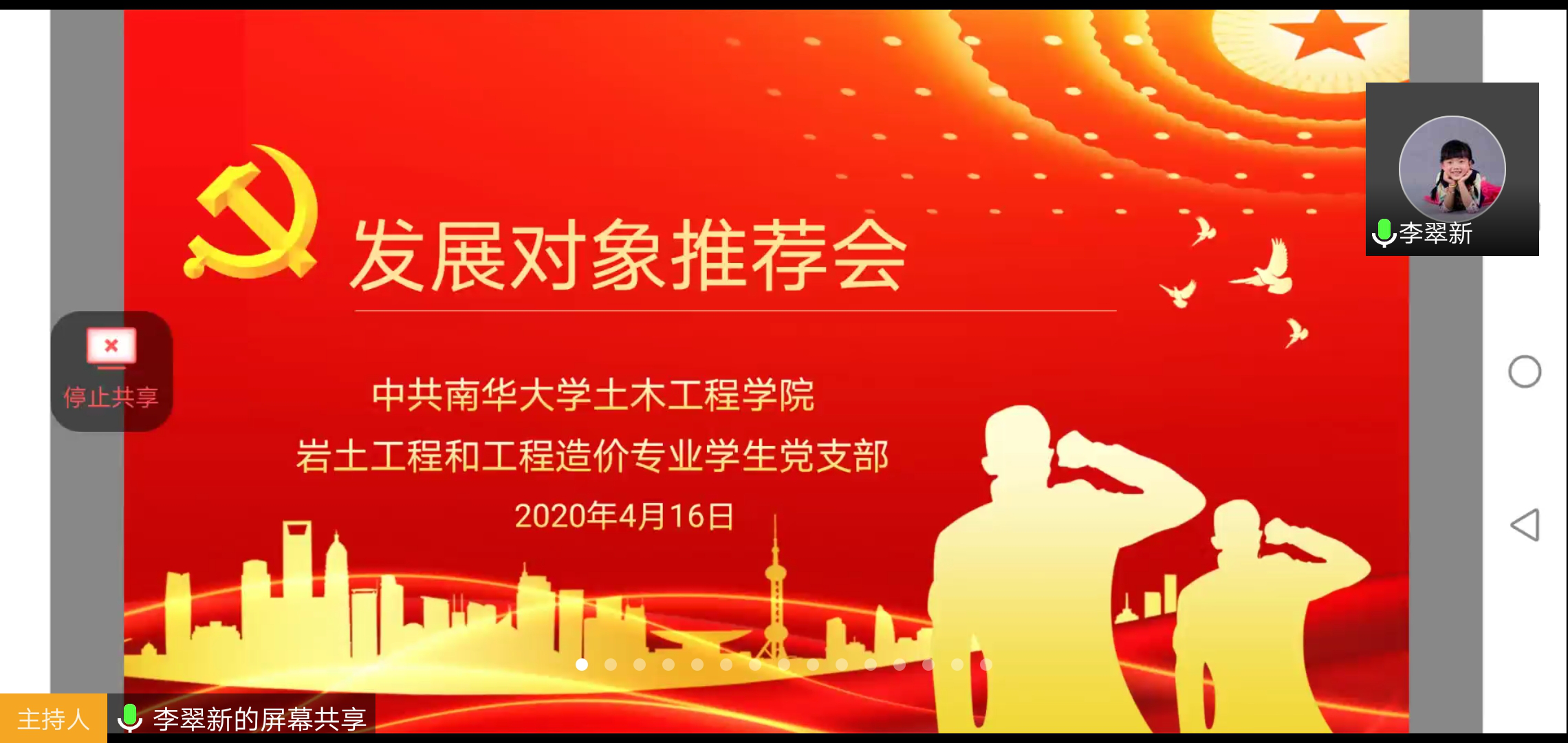 2020年4月16日下午,MK体育岩土工程专业和工程造价专业员工党支部通过腾讯会议线上召开了发展对象推荐大会,会议由党支部书记李翠新老师主持、支部全体党员以及班级群众代表参加了会议。