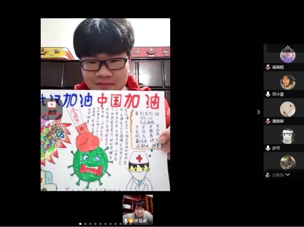 会议分为四部分:首先,李老师带领全体党员学习了习近平总书记在统筹推进新冠肺炎疫情防控和经济社会发展工作部署会议上的讲话精神。随后开展线上交流讨论,与会党员联系实际,交流分享自己的所见、所思、所悟、所行。有的党员分享了自己宣传疫情防控信息的经历,有的分享了身边的感人故事,大家踊跃发言,围绕当前疫情防控、毕业生就业及毕业设计、网课学习等一系列问题提出切实可行的建议。之后,李老师总结到:这场没有硝烟的防疫战让我们深刻认识到中国特色社会主义制度的优势,切实感受到强大的中国力量;青年员工要坚定理想信念,树立正确的人生导向,厚植家国情怀,把自身命运和国家社会利益紧密结合在一起。希望员工党员不忘初心、牢记使命,发挥好指挥员、宣传员、示范员、联络员的作用,积极配合公司、公司做好各项工作,主动帮助班干部做好“每日一报”、“每日健康打卡”、线上教学学风管理等工作,宅而不荒,合理安排学习与生活,切实帮助、服务身边同学。最后,各位党员同志晒出了精心制作的承诺书手绘图、视频、绘画等抗疫作品,为武汉加油,为中国加油。