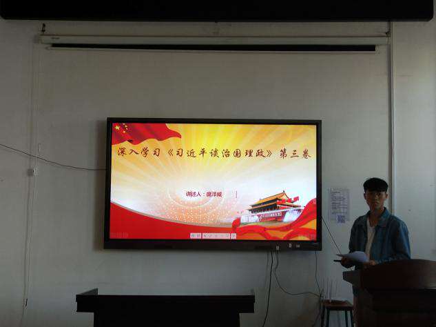 集中学习环节通过党员领学形式开展,领学党员先自己学,带着责任学;再自己讲,带着使命讲。唐佳妮、庞泽威、欧洋洋三名党员通过精心制作的PPT带领全体党员分别学习了习近平总书记在湖南考察的讲话精神、解读了《习近平谈治国理政》第三卷的出版背景、基本情况及主要内容。随后,与会党员进行学习分享,交流心得体会,在思想碰撞中领会精神实质,在学习中思考,在思考中提升。最后李老师总结到:希望大家做到学用结合,学做结合,知行统一,争做新时代好党员。牢记习近平总书记对青年的期望和嘱托,珍惜当下,把握好每一天,不负青春立大志,不负韶华勤奋斗,不负时代勇于担当!