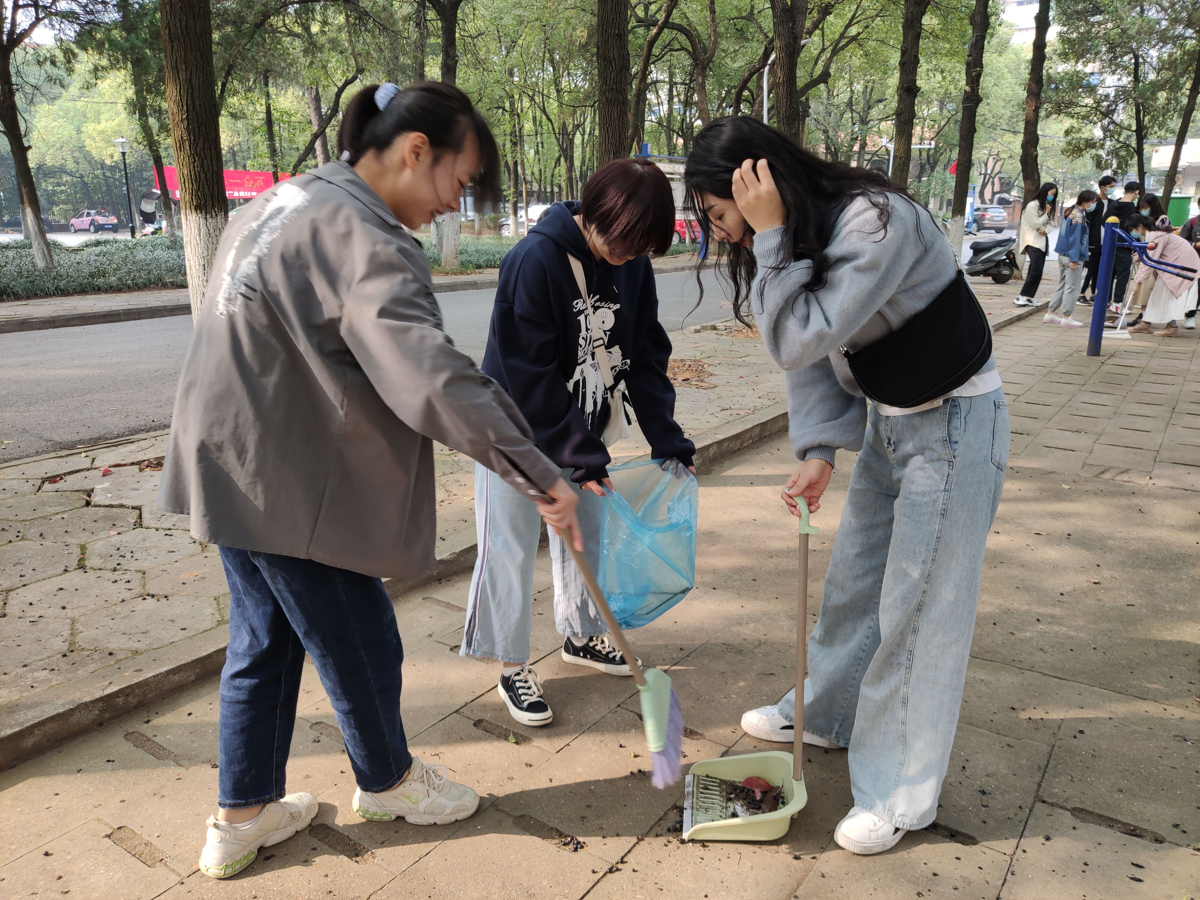 各位入党积极分子携带清扫工具集合完毕后,以小组为单位在所分配的区域认真打扫,充分发扬了不怕脏、不怕累的优良作风和团结协作的精神。在各组的共同努力下,校园环境得到了明显改善,周边绿化带变得干净整洁。清扫结束,各位入党积极分子在指定地点再次集合,汇报劳动情况、交流劳动心得。