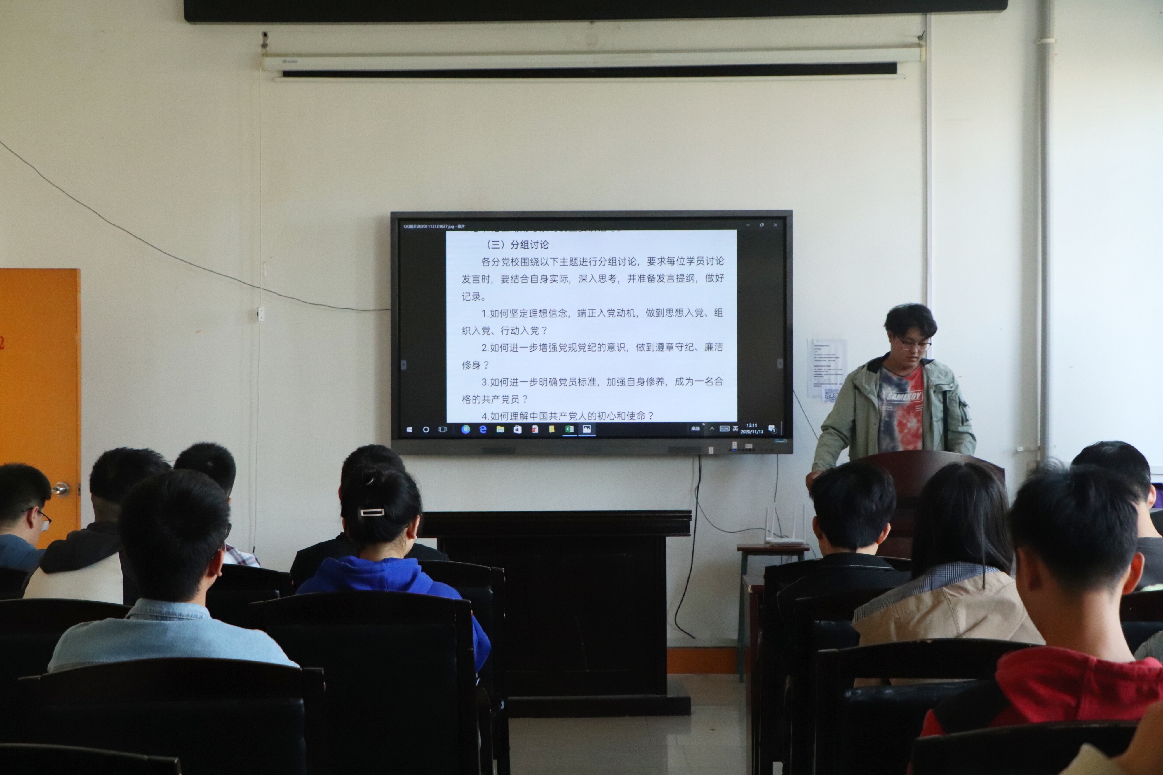 2020年11月13日中午,MK体育发展对象培训班专题讨论会在土木楼四楼会议室举行,全体培训班学员参加此次会议,会议由培训班联络员宋英臣主持。