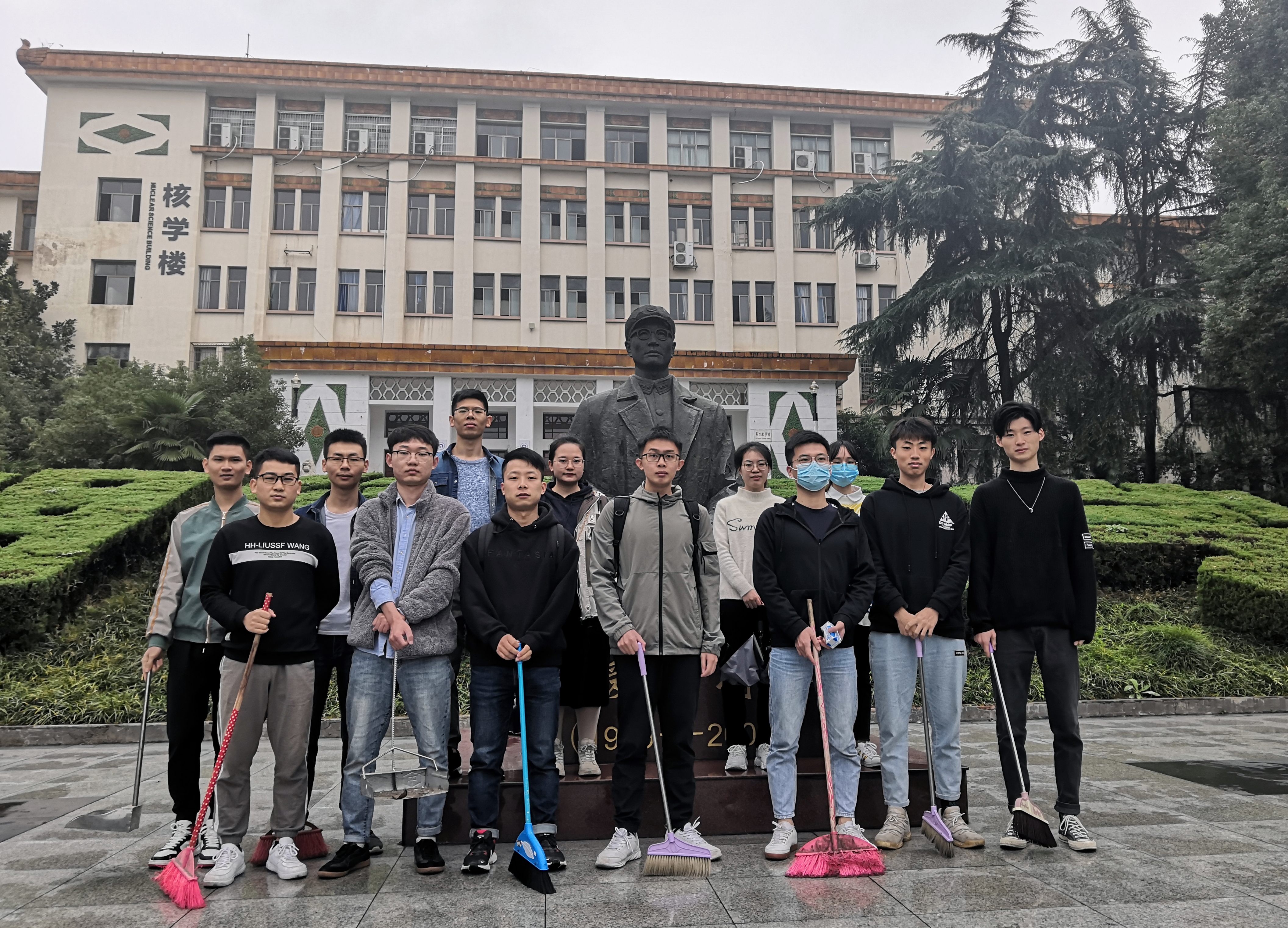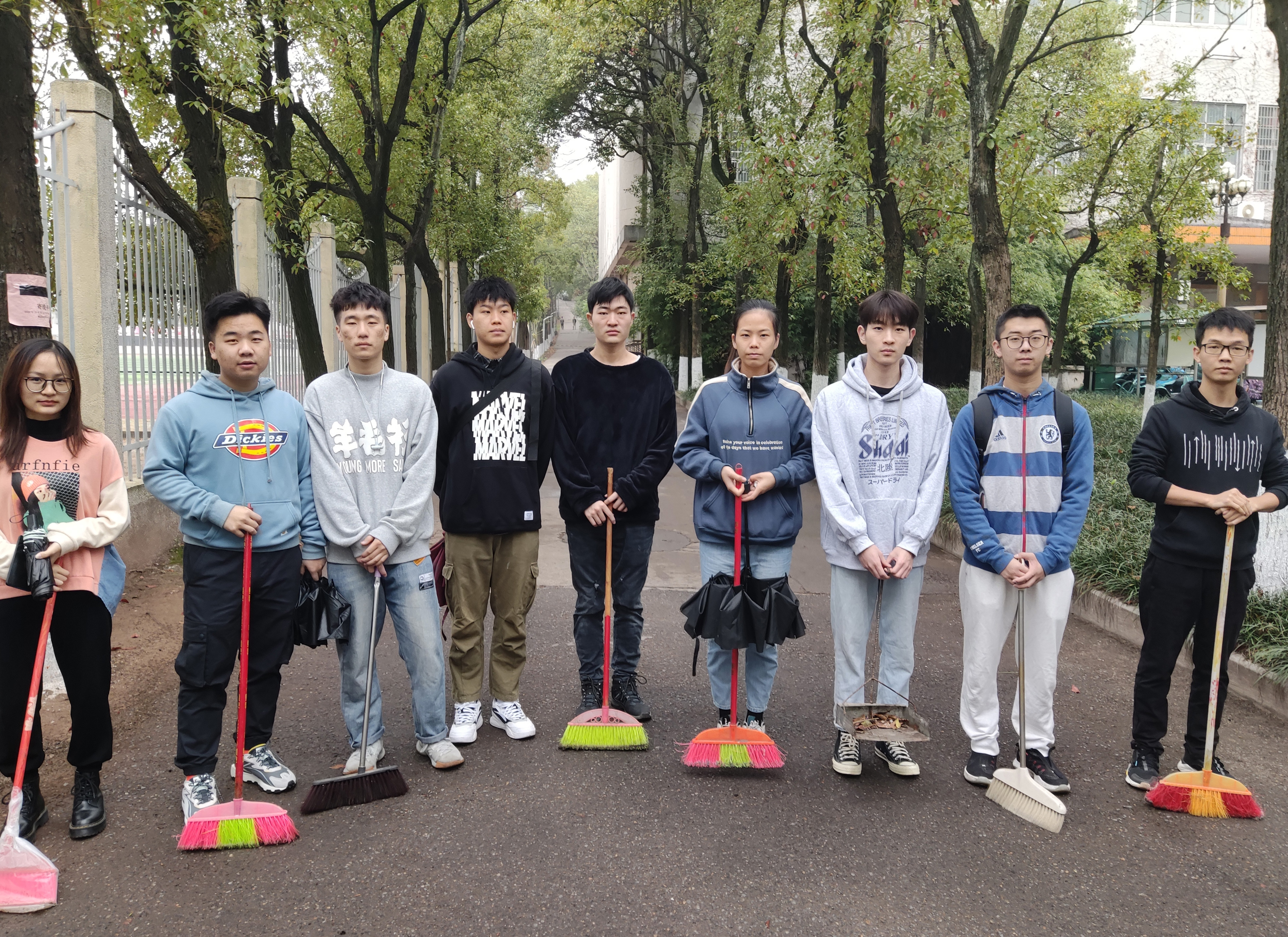 同学们按支部分组,分别在四位负责人的带领下,于张爱萍将军铜像、王淦昌铜像、明德园食堂、卧虎山四处准时开展劳动。劳动途中,大家发挥了“不怕苦,不怕累”的精神,认真清理公路上的落叶废弃物、路面堆积的尘土、人行走道上的杂草垃圾,党员之间互相帮助、共同协作,以最快、最好的方式完成了此次义务劳动。
