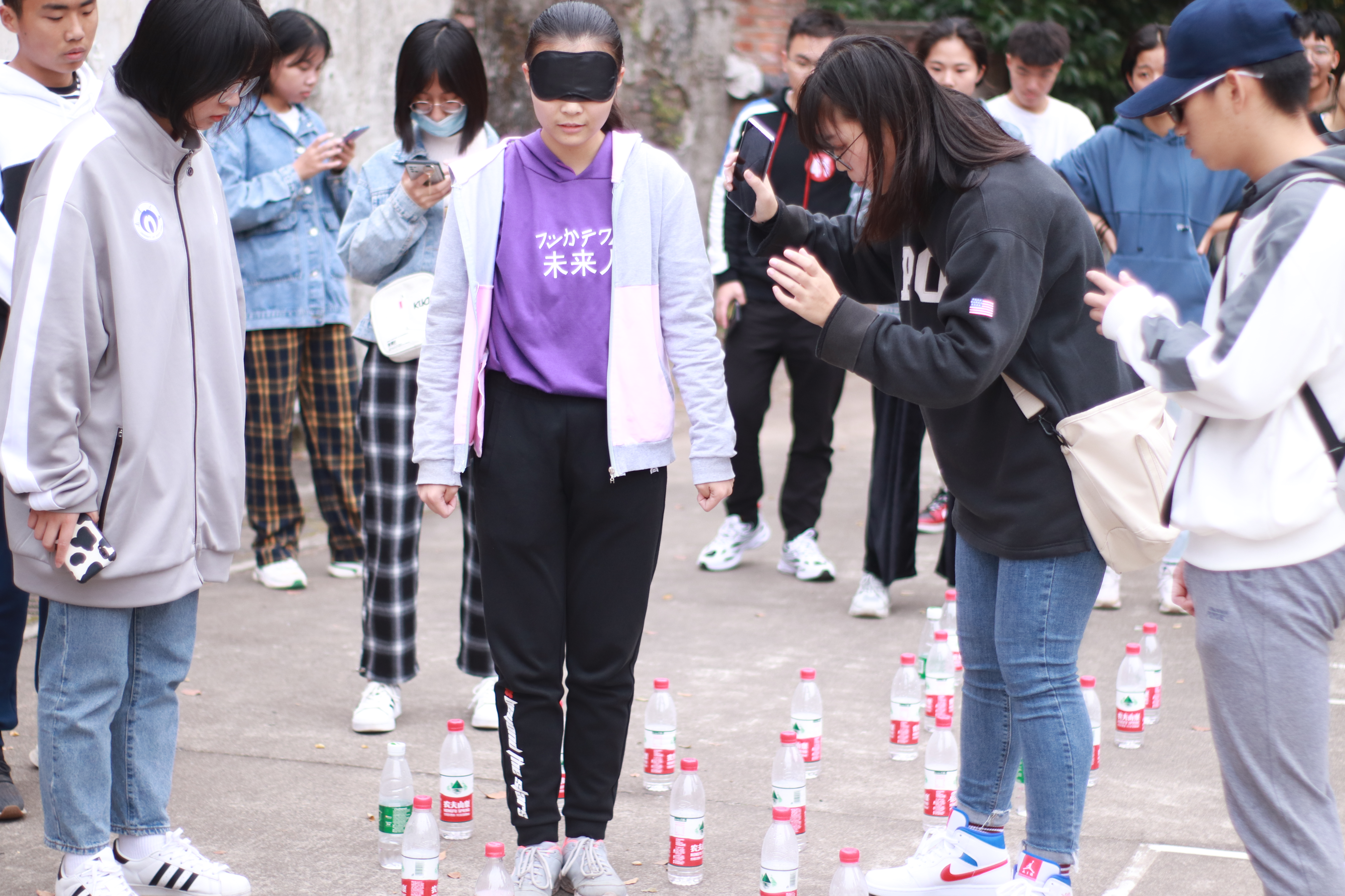 活动开始前,各队在起点集合清点人数并领取号码牌和任务卡。在裁判准备就绪后,活动正式开始。本次越野大赛共由“六芒星”、“纸上奇兵”、“穿越地雷阵”、“我爱猜歌名”、“乒乓接力赛”、“抢凳子”、“坐地起身”、“集体跳绳”、“有口难言”、“投篮比赛”十个游戏环节组成。每一个游戏环节顺利完成后,由工作人员盖章。在游戏中,各队成员默契配合、积极参与;途中更是不甘落后,整个南华校园都能看到他们奔跑的身影。所有环节完成后,各队回到起点,由工作人员按各小队累计时长进行排名并向获奖队伍颁发奖状。至此,本次定向越野大赛圆满结束。