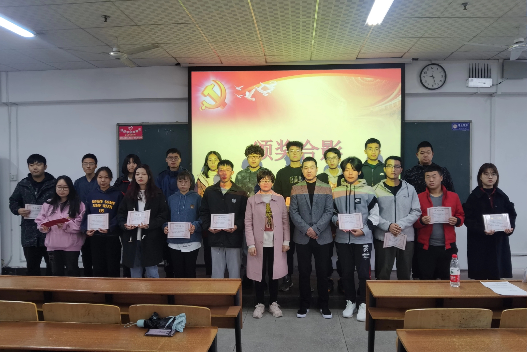 伴随着庄严的国歌声,典礼正式开始。班主任李翠新老师首先对本次培训情况进行了小结,对培训期间大部分学员的表现表示肯定,同时也指出了存在的问题和不足。紧接着,彭兴明老师宣读了优秀学员表彰文件。优秀学员代表刘浩结合在培训班期间的学习收获进行发言,他代表全体学员做出承诺,今后要进一步端正入党动机,刻苦学习,加强实践,以优异成绩和实际行动积极向党组织靠拢。随后,李翠新老师作总结寄语,希望同学们强化理论学习,坚定理想信念,以正确的态度对待党组织的考察,坚持学以致用,有效发挥先锋模范作用。最后,由彭兴明老师向优秀学员颁发荣誉证书并合影留念。