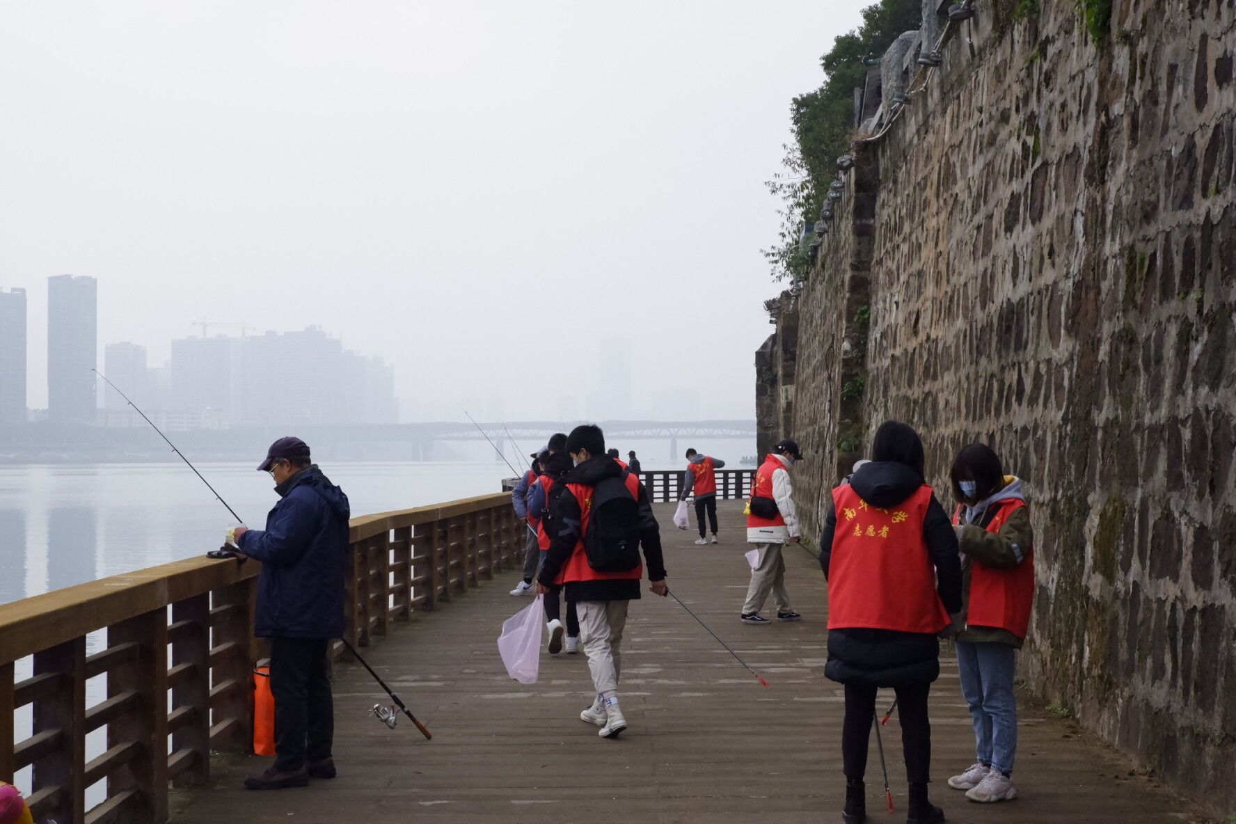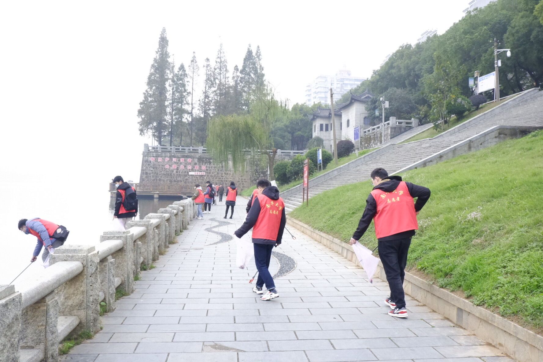 全体学员在南华广场一教前集合后前往湘江沿岸进行水质检测、问卷调查、垃圾清理志愿活动,两个小时的活动期间,志愿者们采取两个河段水源进行检测、为长达两公里的湘江沿岸清理垃圾、寻找周边路人进行垃圾分类相关内容问卷调查并宣传环保理念。