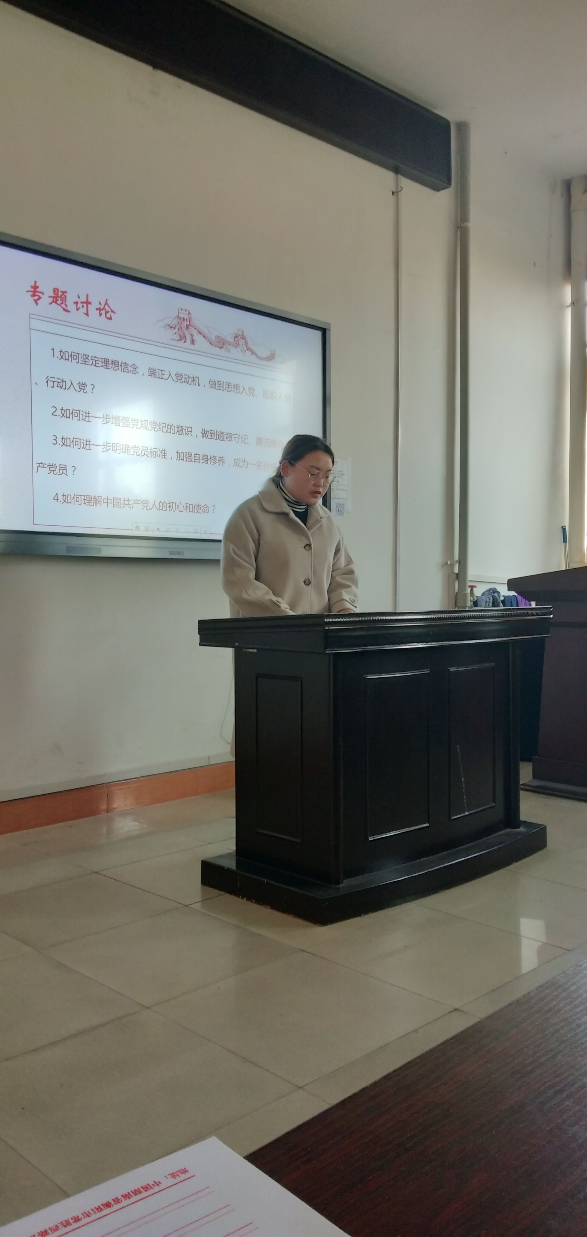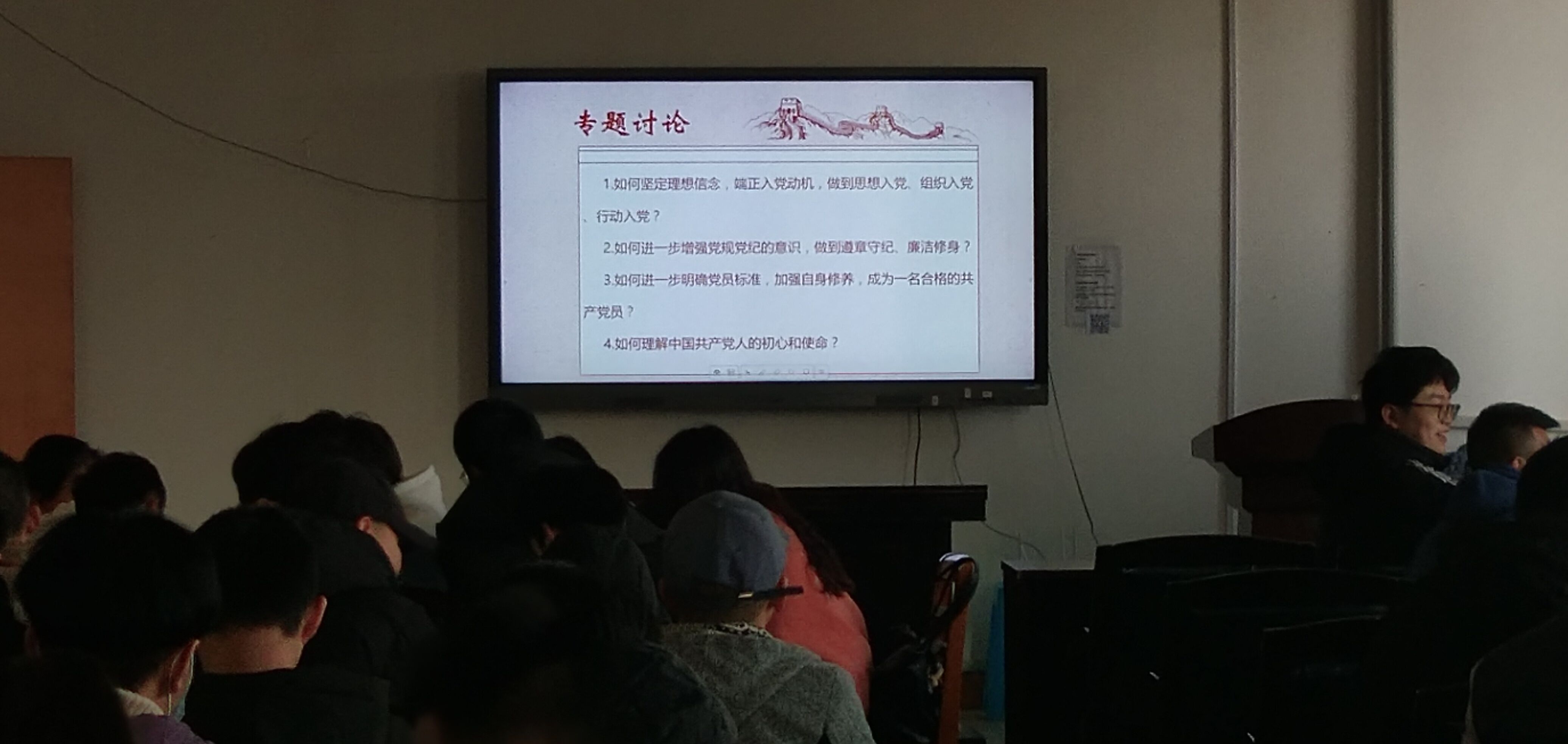 此次专题讨论围绕“如何坚定理想信念,端正入党动机,做到思想入党、组织入党、行动入党”、“如何进一步增强党规党纪的意识,做到遵章守纪、廉洁修身”、“如何进一步明确党员标准,加强自身修养,成为一名合格的共产党员”、“如何理解中国共产党人的初心和使命”四个主题展开。首先是分小组自由讨论,然后各小组代表总结发言,各支部的学员们提到,新时期老员工发展对象在思想上、行动上要积极跟随党的脚步,贯彻落实习近平新时代中国特色社会主义思想,坚持四个意识、四个自信,坚定理想信念,坚守入党初心,坚持党性原则,加强自我约束,不折不扣执行党的纪律和规矩,充分发挥先锋模范作用,努力向党组织靠拢,争取早日成为一名优秀的共产党员。