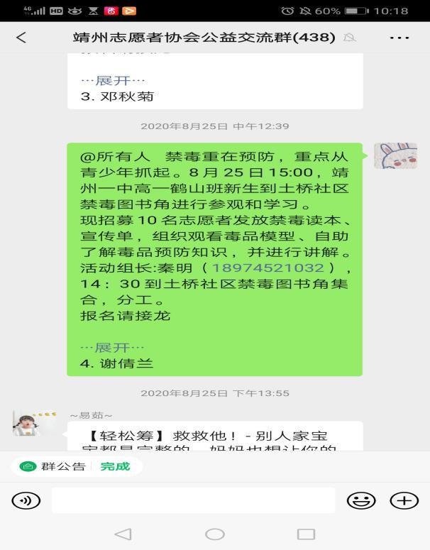 秦明是湖南省怀化市靖州县志愿者协会的会长,2008年汶川地震期间,秦明同志和志愿者活动结下了不解之缘:汶川大地震,靖州20多个青年为地震捐款,从此秦明开始接触到志愿者活动、2012年加入快乐爱心协会、2014年加入志愿者协会。现如今,翻开他的朋友圈,你会发现他的生活里除了是志愿者活动还是志愿者活动,他已经把志愿者服务变成了一种工作和责任。