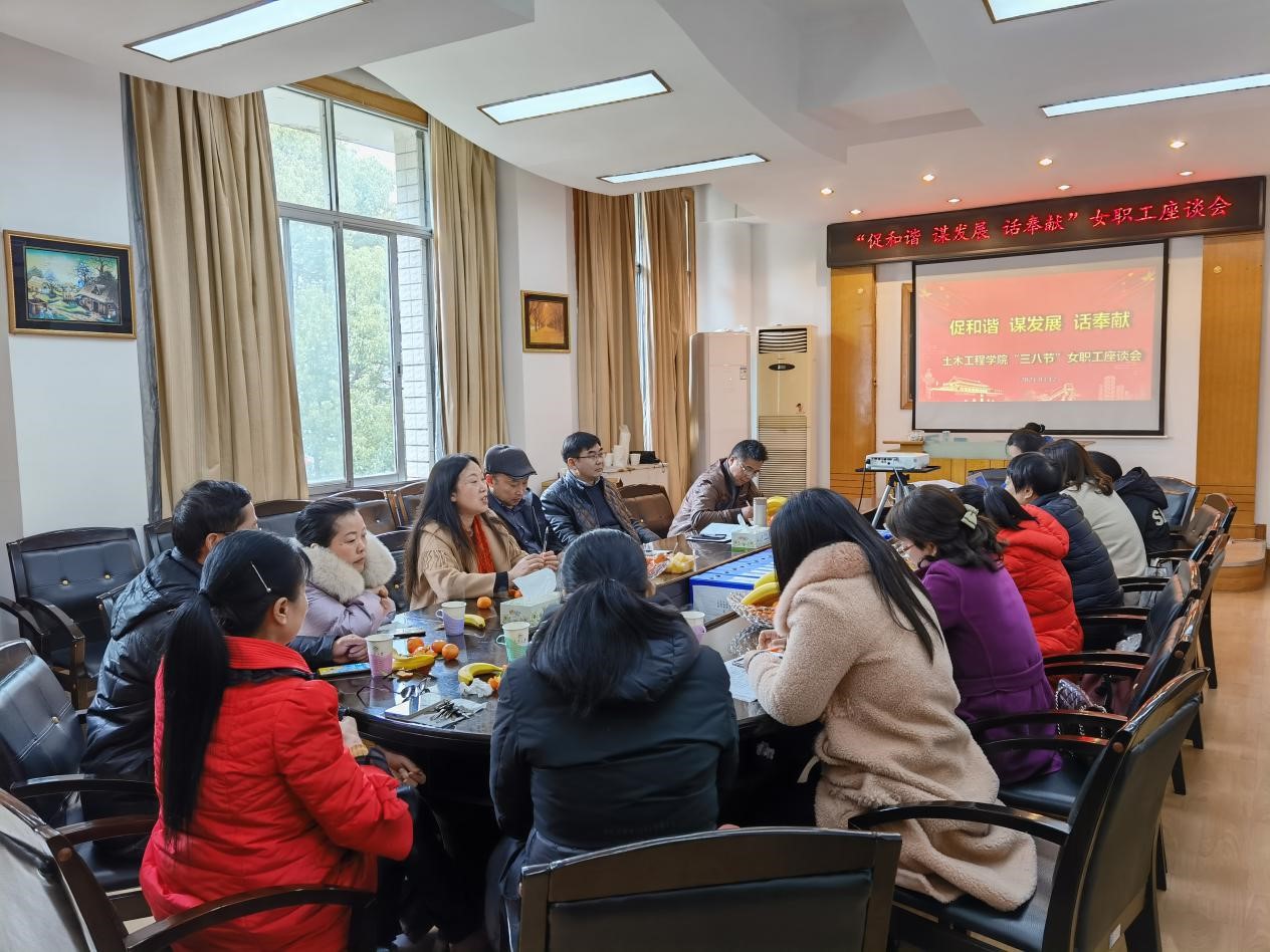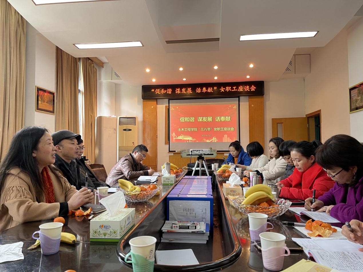 为庆祝国际“三八”妇女节,2021年3月12日下午,MK体育工会在公司三楼会议室举办“促和谐、谋发展、话奉献”女职工座谈会,座谈会由工会主席唐素芝主持。院领导陈振富、谢东、王劲松应邀出席,与院里女职工及工会委员欢聚一堂,探讨公司的和谐和发展问题,参会的女职工都谈了自己学习、工作、生活的感悟,特别是在专业发展、角色转换、感恩和珍惜等方面形成了共识,大家都认为生活在土木公司的大家庭有幸福感、归属感,纷纷表态要为公司的和谐、发展做出自己应有的贡献,充分发挥女职工半边天的作用。会议在欢乐祥和的气氛中圆满结束。