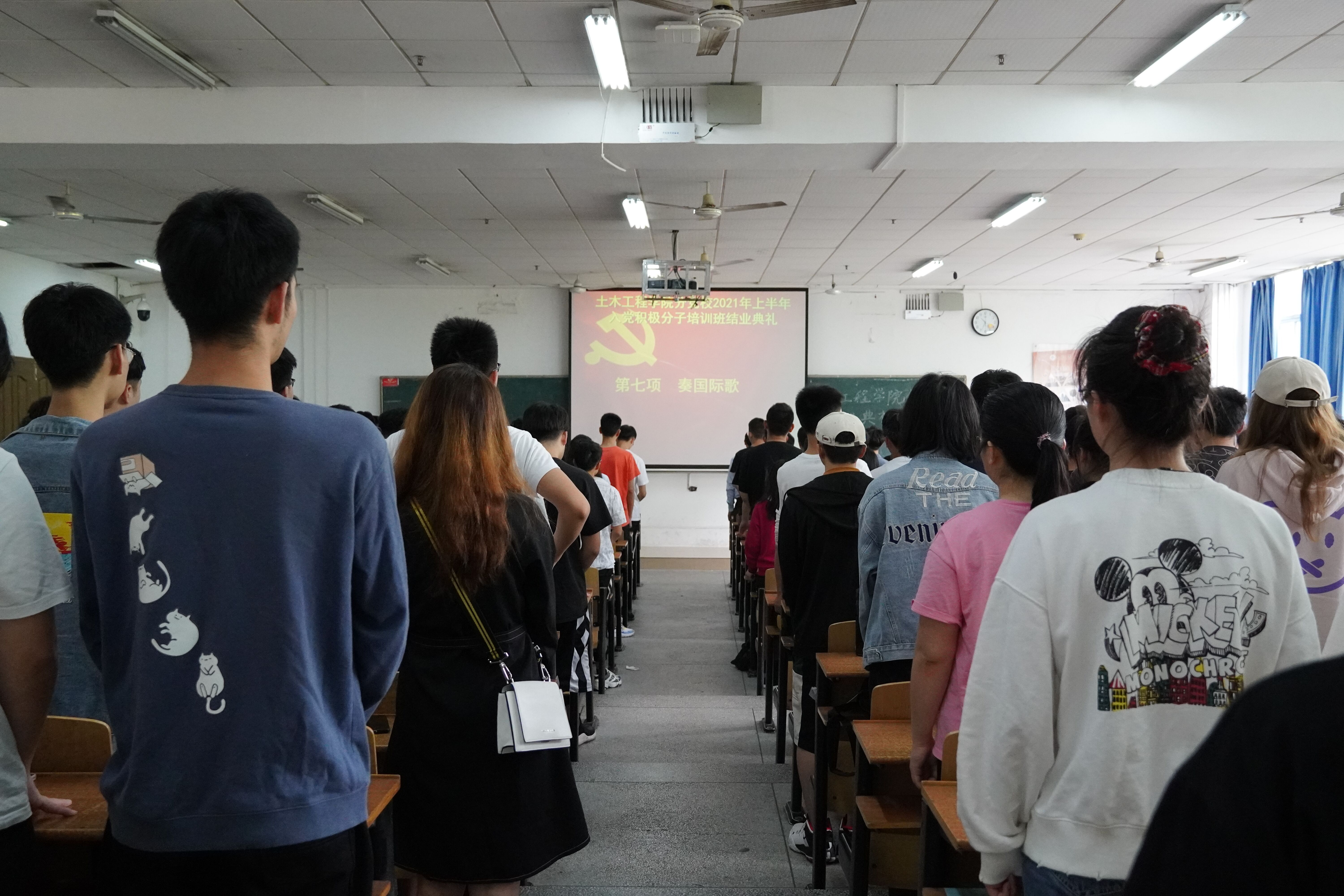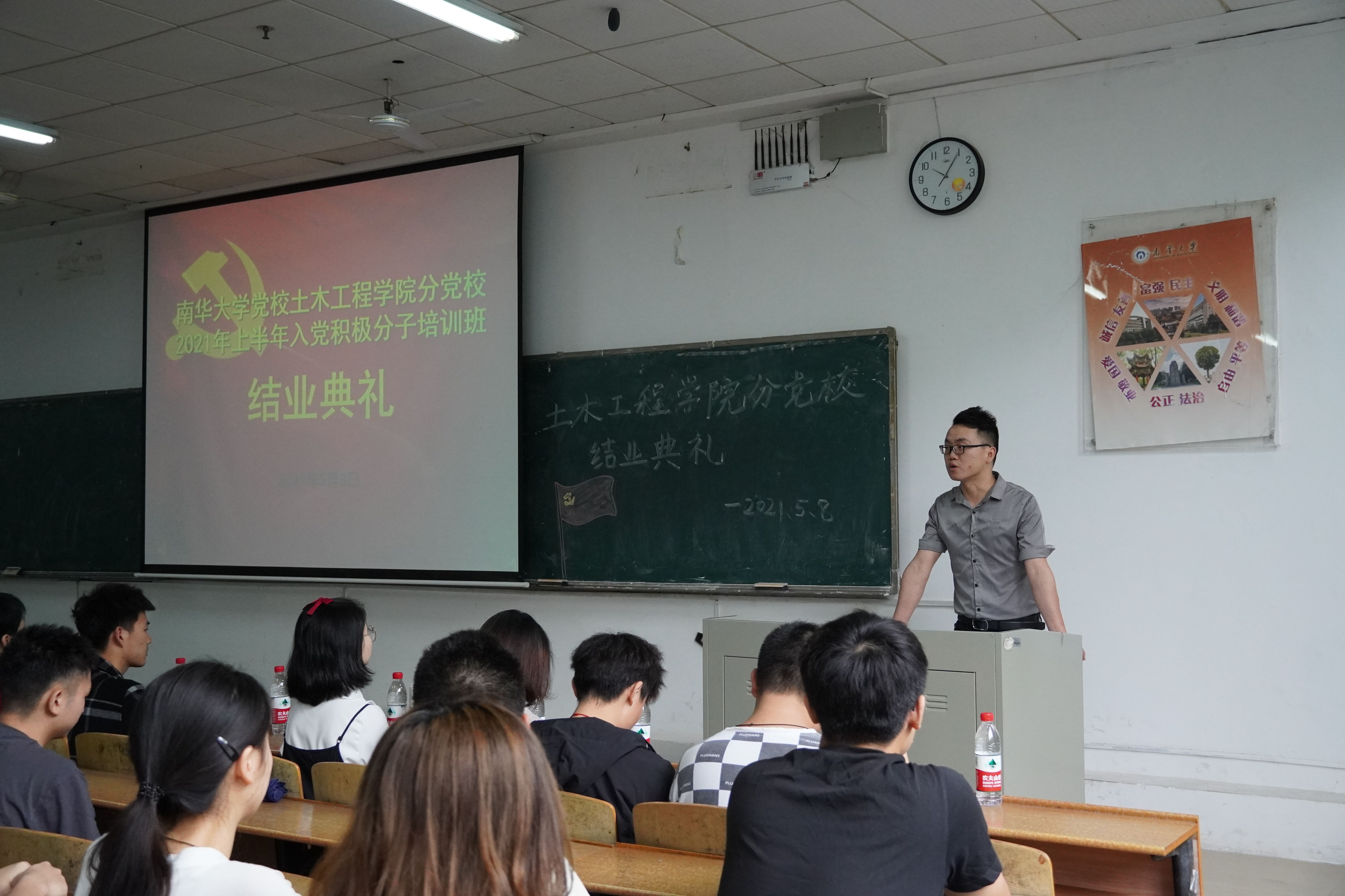 2021年5月8日上午,mksport体育员工党支部在南华楼112教室举行2021年上半年入党积极分子培训班结业典礼。公司党委书记陈振富、辅导员贺淑珍、邓都老师、团委书记张孝磊老师以及全体入党积极分子共同参加此次结业典礼。典礼由张孝磊老师主持。
