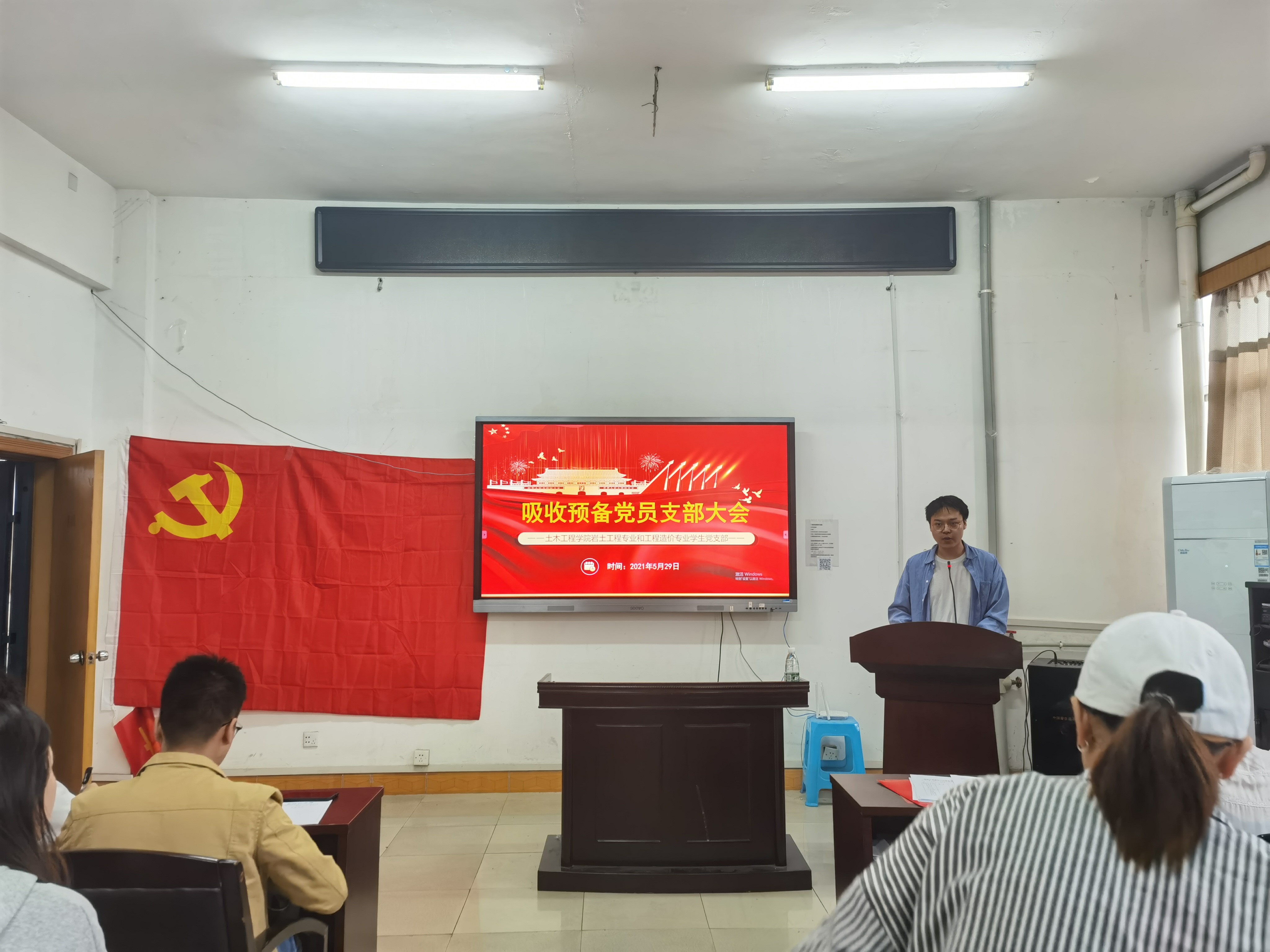 2021年5月29日8:30,MK体育岩土工程专业和工程造价专业员工党支部在土木楼四楼会议室召开吸收预备党员支部大会,会议由支部副书记屈海朋主持,支部全体党员、发展对象参加了会议。