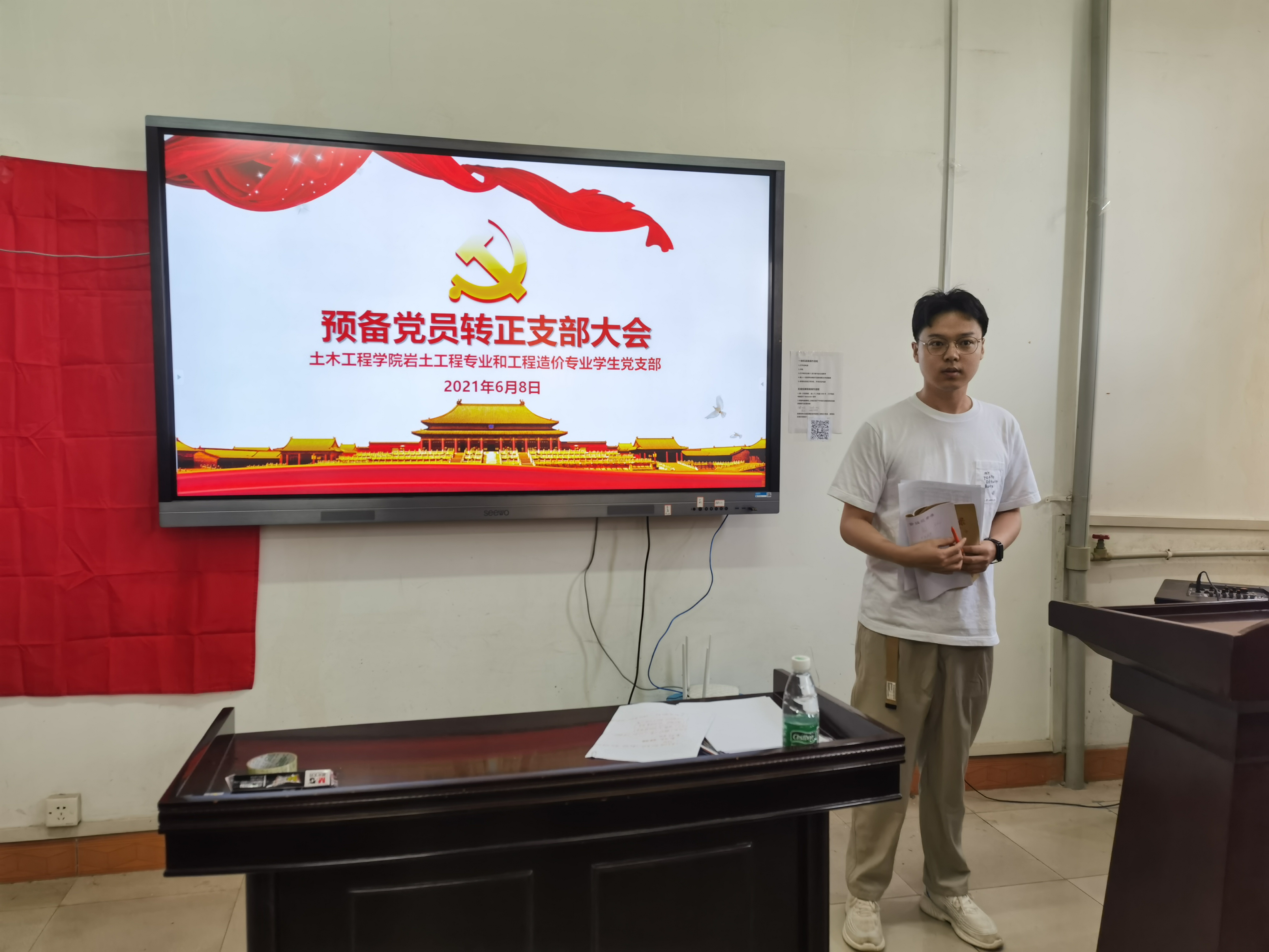 2021年6月8日9:00,MK体育岩土工程专业和工程造价专业员工党支部在土木楼四楼会议室召开预备党员转正大会暨支部委员补选大会,会议由支部副书记屈海朋主持,支部全体党员参加了会议。大会讨论了关于卢尚文等9名同志是否按期转正及补选支部委员的问题。