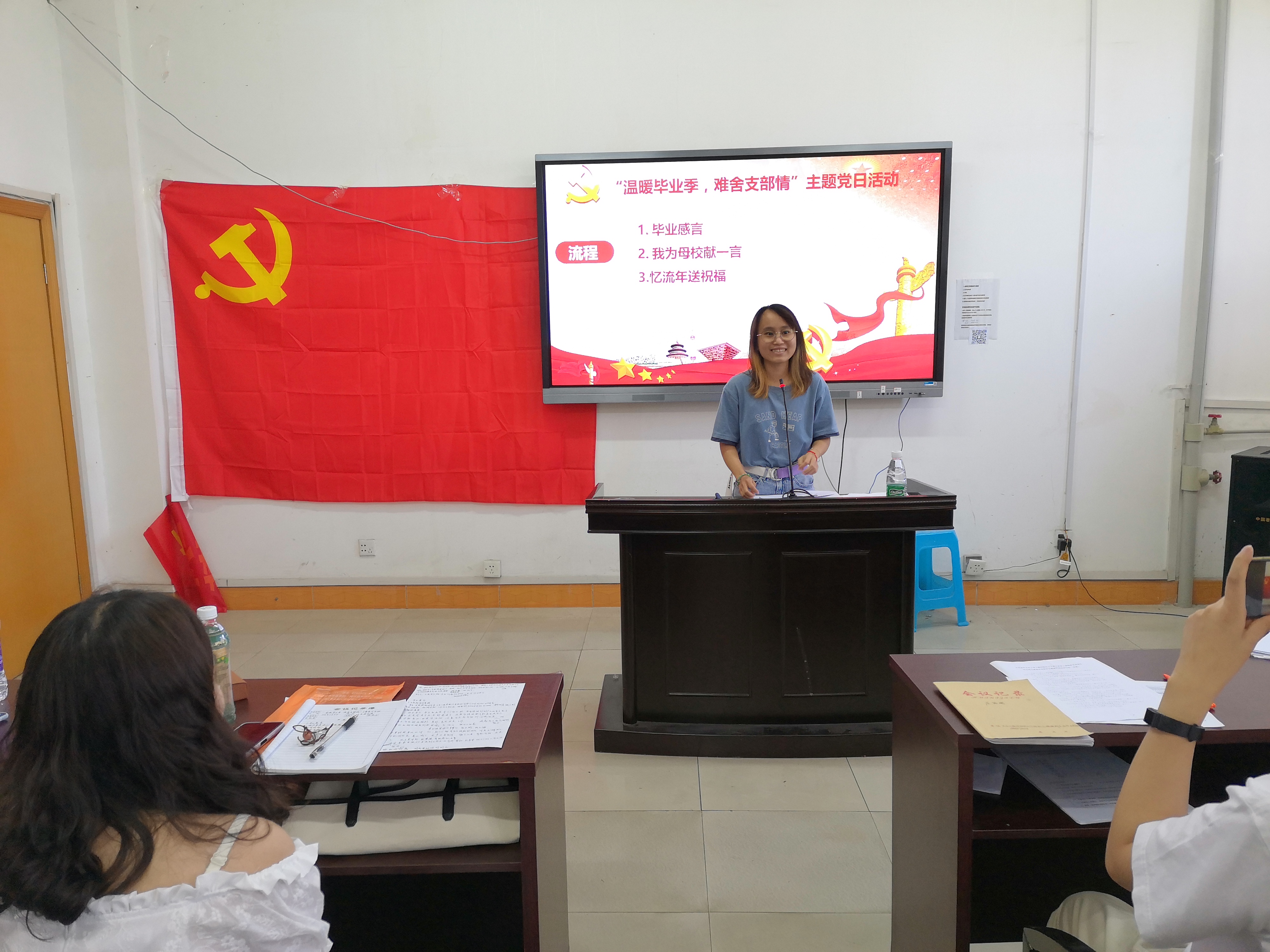 本次活动分三个环节:毕业感言、我为母校献一言、忆流年送祝福。屈海鹏、刘璐瑶、谭景鹏、黎艳红等同志为在座的学弟学妹们分享自己大学四年来的心得体会,结合自身经历带来一些建议和意见,鼓励学弟学妹们坚持本心、带着自信心和上进心对待未来的学习和生活,去完成自己的目标和理想。同时也为母校、公司的发展提出了自己的意见和建议。在忆流年送祝福环节中,学弟学妹们为毕业生党员带来了合唱《再见》、朗诵《桅子花开的毕业季》,并赠送祝福卡,表达对学长学姐们毕业的真切祝福。