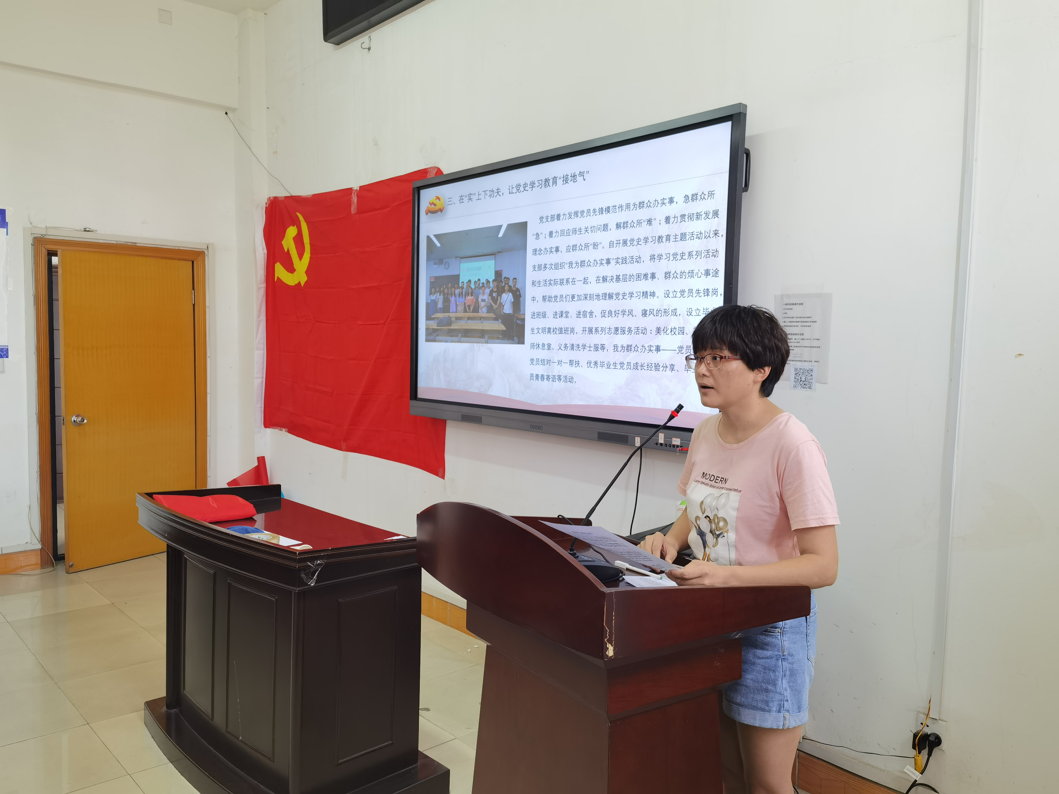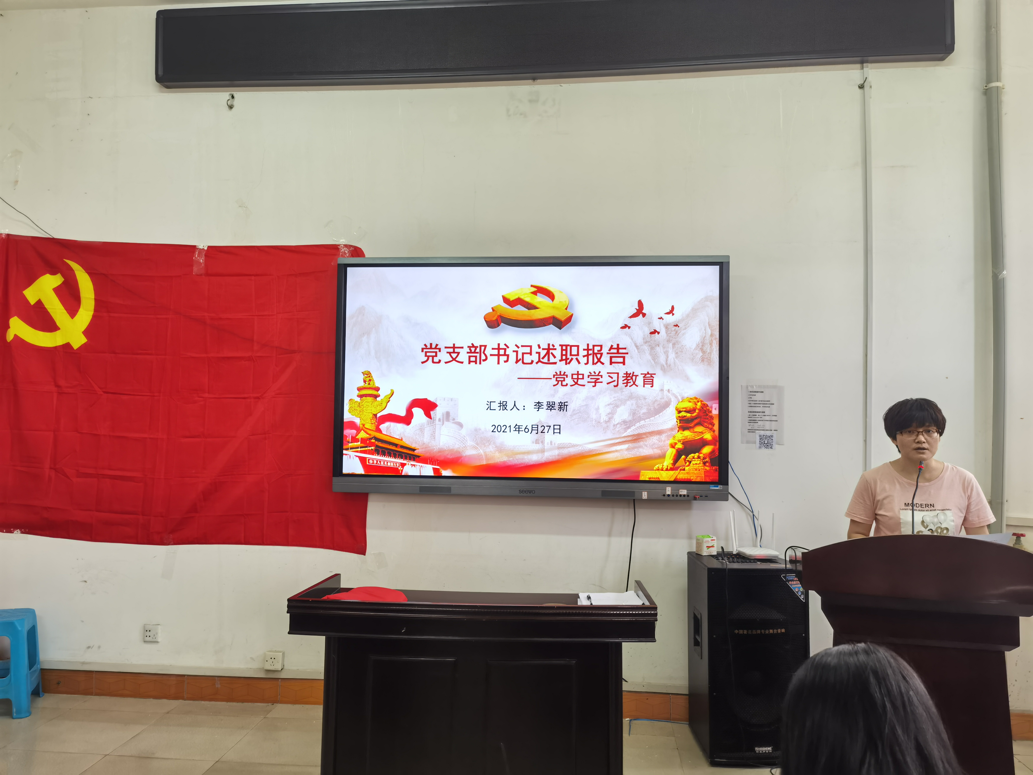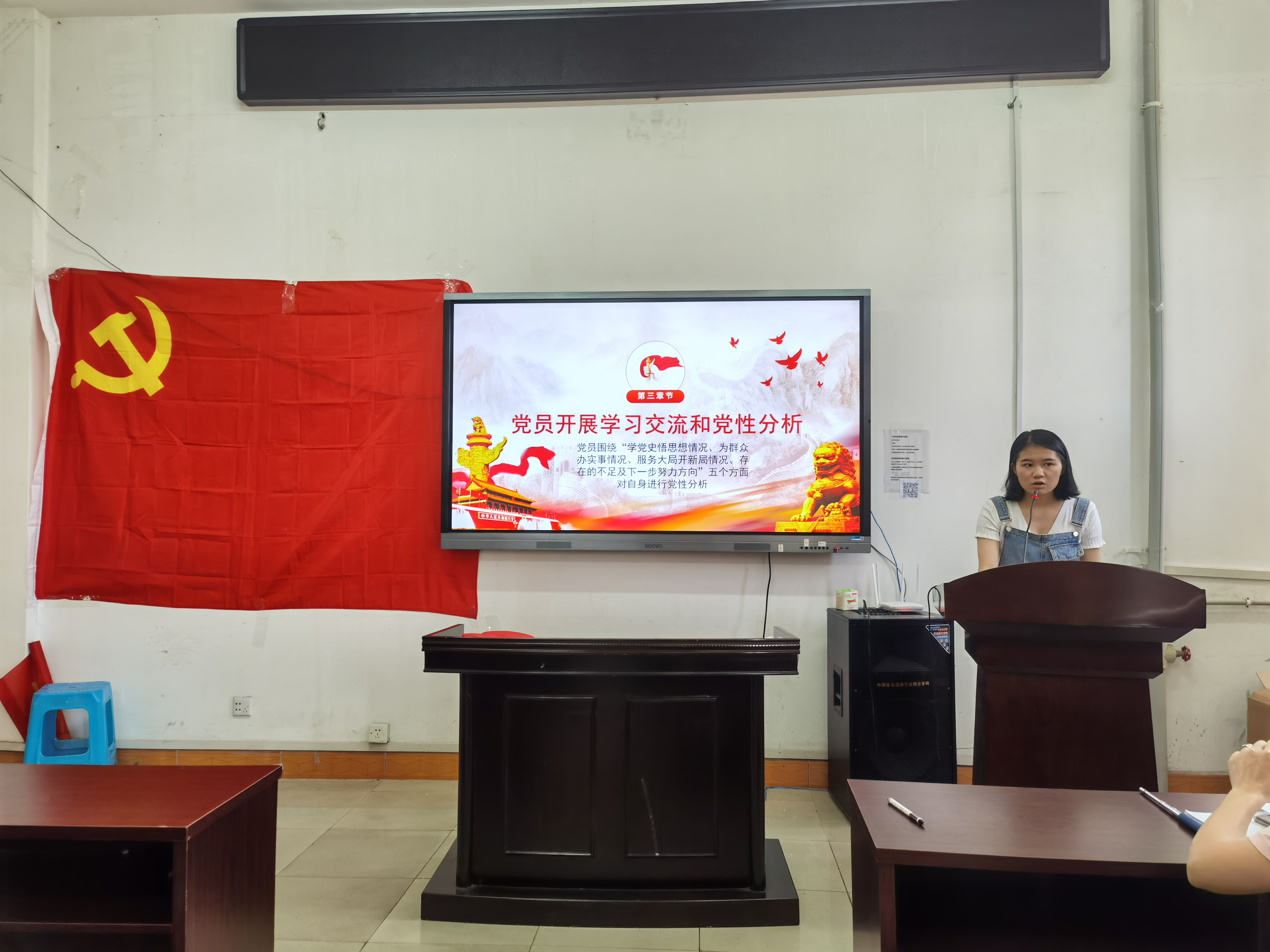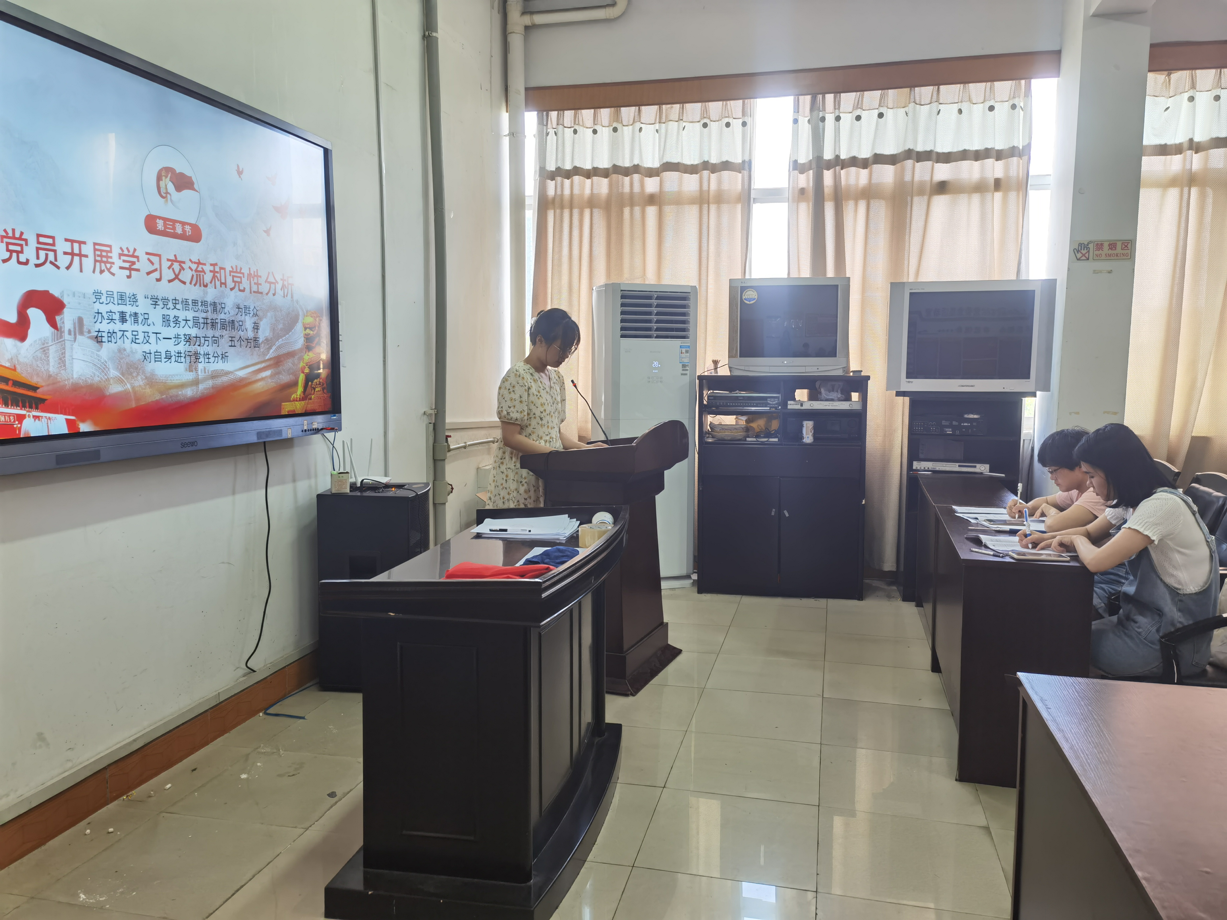 首先,支部书记李翠新老师带领全体党员重温入党誓词。随后,支部书记李翠新老师进行述职,从“学”“悟”“实”三个方面报告了党支部开展党史学习教育的情况,并代表支部进行对照检查,检视存在的问题和不足,带头开展自我批评。接着,与会党员围绕“学党史悟思想情况、为群众办实事情况、服务大局开新局情况、存在的不足及下一步努力方向”这五个方面开展学习交流和党性分析,深入开展批评与自我批评,找出自身突出的问题,相互提出意见和建议,并在未来的学习生活中予以改正。最后支部书记李翠新老师进行点评总结:全体党员围绕主题,查找问题,既聚焦自己,也真诚地帮助别人,达到了交流思想、改进工作的目的。希望全体党员以此次组织生活会为契机,下一步继续深化党史学习,学出认识,学出精神,学出情怀,学出担当。强化党员的责任与担当,发挥党员的引领作用,加大为民办实事的力度,扎实开展好各项工作。会上,支部书记还强调了暑期员工管理及安全问题。会议到此圆满结束。