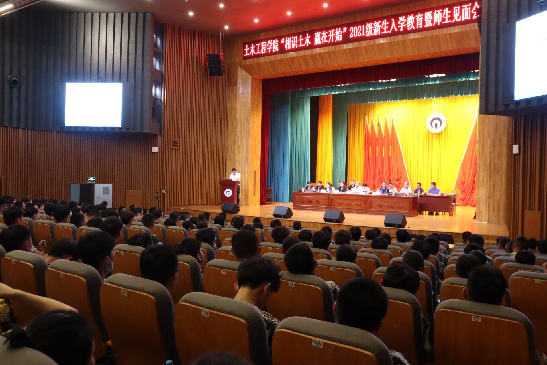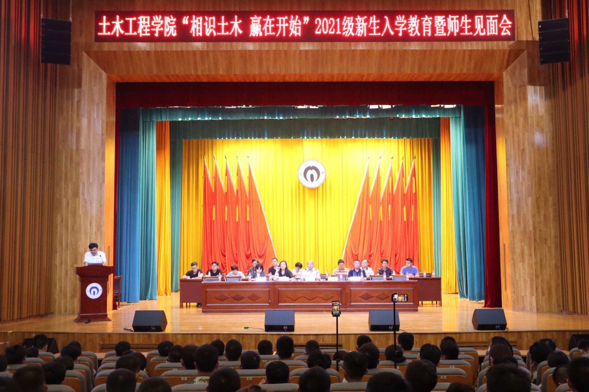 mksport体育“相识土木•赢在开始”2021级新生入学教育暨师生见面会于2021年9月12日在南校大礼堂举行。公司党委书记陈振富、经理谢东、党委副书记唐素芝、副经理王劲松、副经理刘清,各系室主任、教师及学工室全体辅导员老师出席会议。2021级班助及全体新生共同参加此次大会。