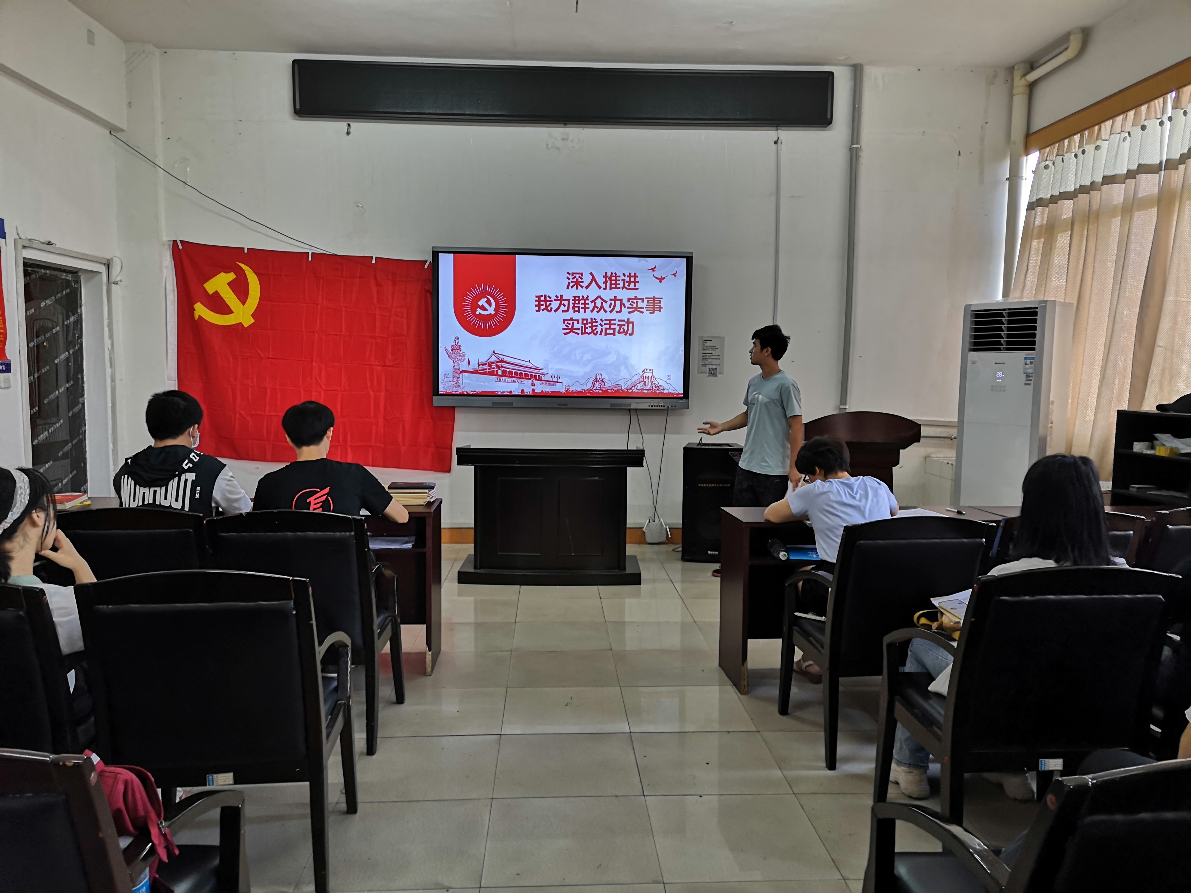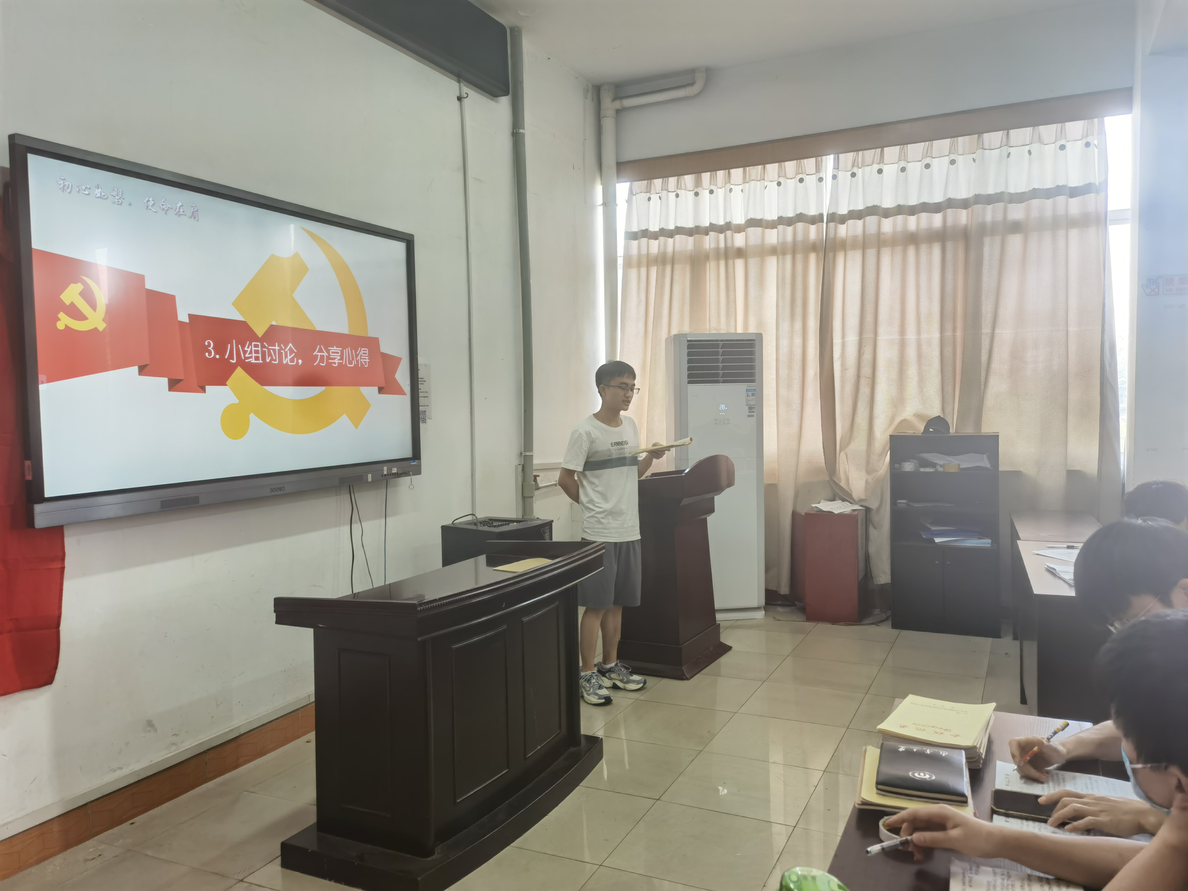 首先,全体党员通过马龙、杨倩两位运动员专访,学习奥运榜样精神,由此激励党员更加努力学习,拥有自强不息的精神。紧接着由谌琪欣、尹琦洋两名同志进行领学,集中学习了习近平总书记在中央党校(国家行政公司)中青年干部培训班开班式上的讲话内容和《关于深入推进“我为群众办实事”实践活动的通知》;随后进行小组讨论并交流分享学习心得,提出青年一代党员要意识到自身的历史担当和民族重任,发挥先锋模范作用,从群众中来,到群众中去,立足实际,真正为群众做实事。