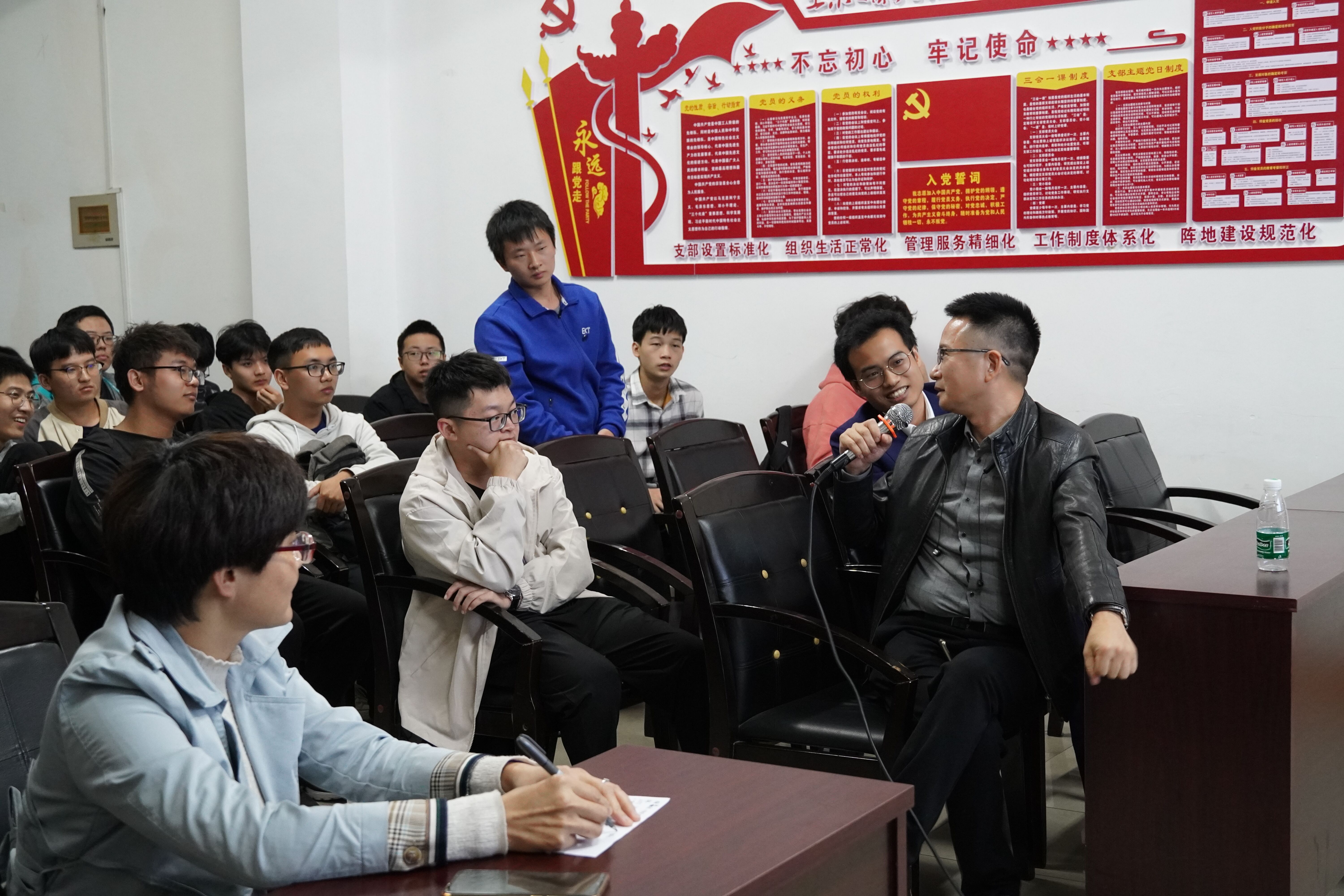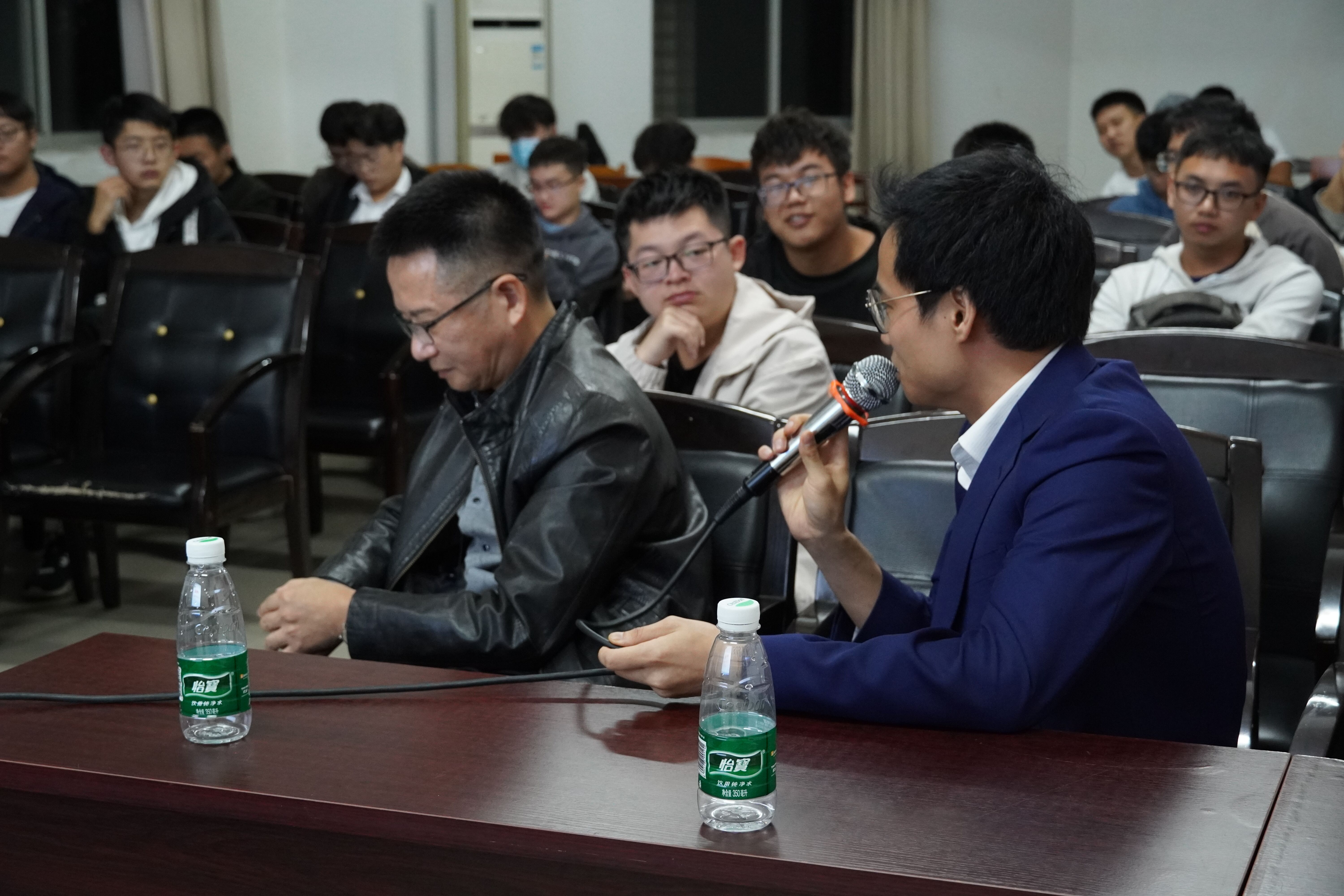 会议伊始,李翠新老师说明本次会议初衷,并向同学们介绍这两位优秀员工。随后,先由李大庆学长与同学们交流。他结合自己的创业经历,向在座的同学们总结出“培养学习能力”“懂得吃苦”“吃亏是福”这三条经验,并希望同学们牢记在心。在李学长与同学们的热情交流后,16届岩土专业毕业生唐希学长继续和同学们分享经验。唐希学长以自己幽默风趣的口吻向同学们讲述了自己的老员工活和从业经历,在对母校MK体育表达感谢和怀念的同时,他也对岩土专业的同学们致以鼓励,希望大家争做“复合型人才”。接下来,同学们纷纷向李大庆和唐希这两位优秀员工提问,李学长和唐学长耐心地为在场的学弟学妹们答疑解惑。会议最后,李翠新老师对返校交流的两位员工表达感谢。至此,本次优秀员工返校座谈交流会圆满结束。