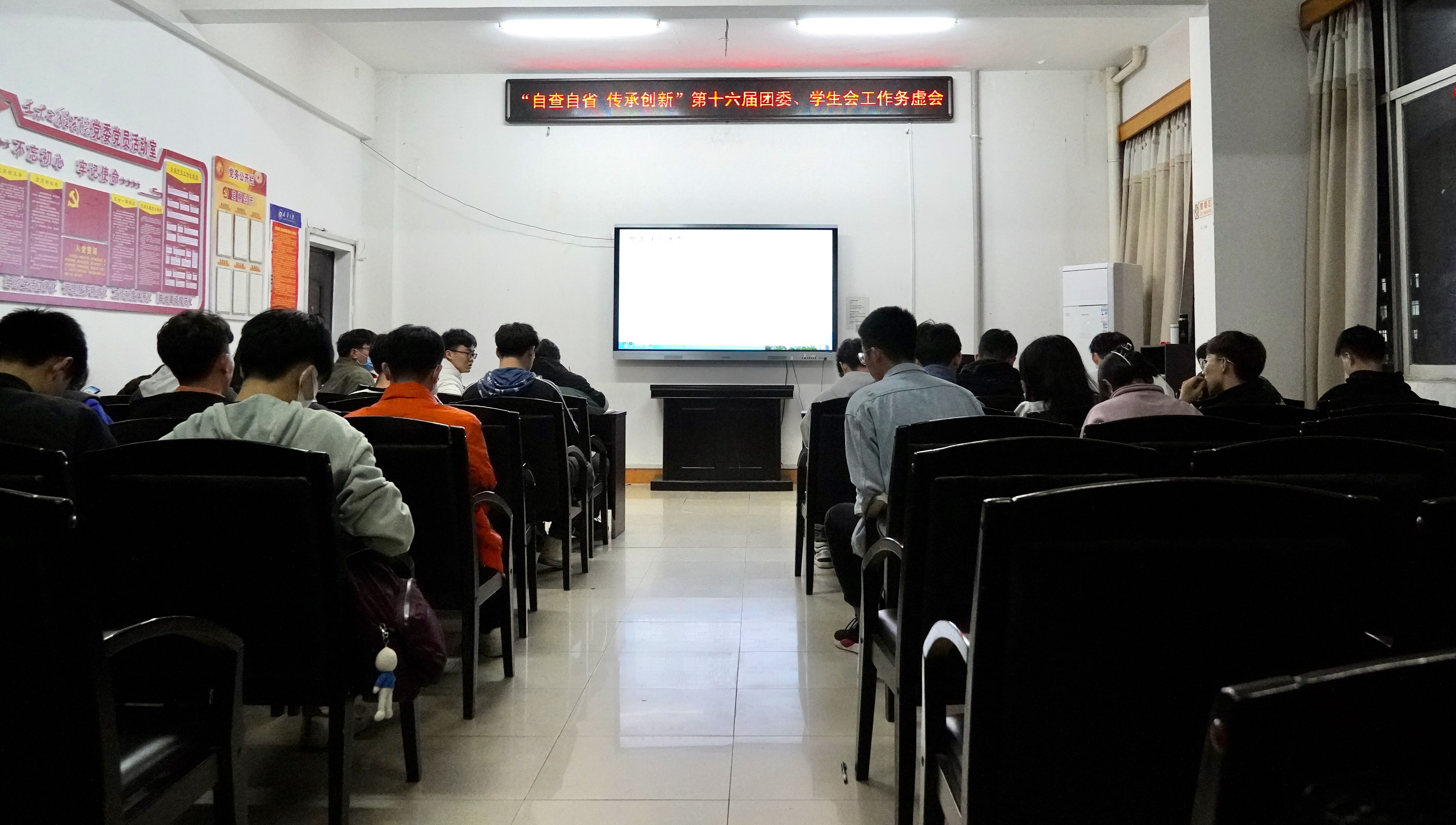 2021年11月16日晚7点,MK体育于土木楼四楼会议室召开第十六届团委、员工会工作务虚会。本次会议分上下两个半场进行。院团委书记张孝磊、辅导员易明明以及MK体育全体团委、员工会干部出席此次会议。会议由员工会主席张钞主持。