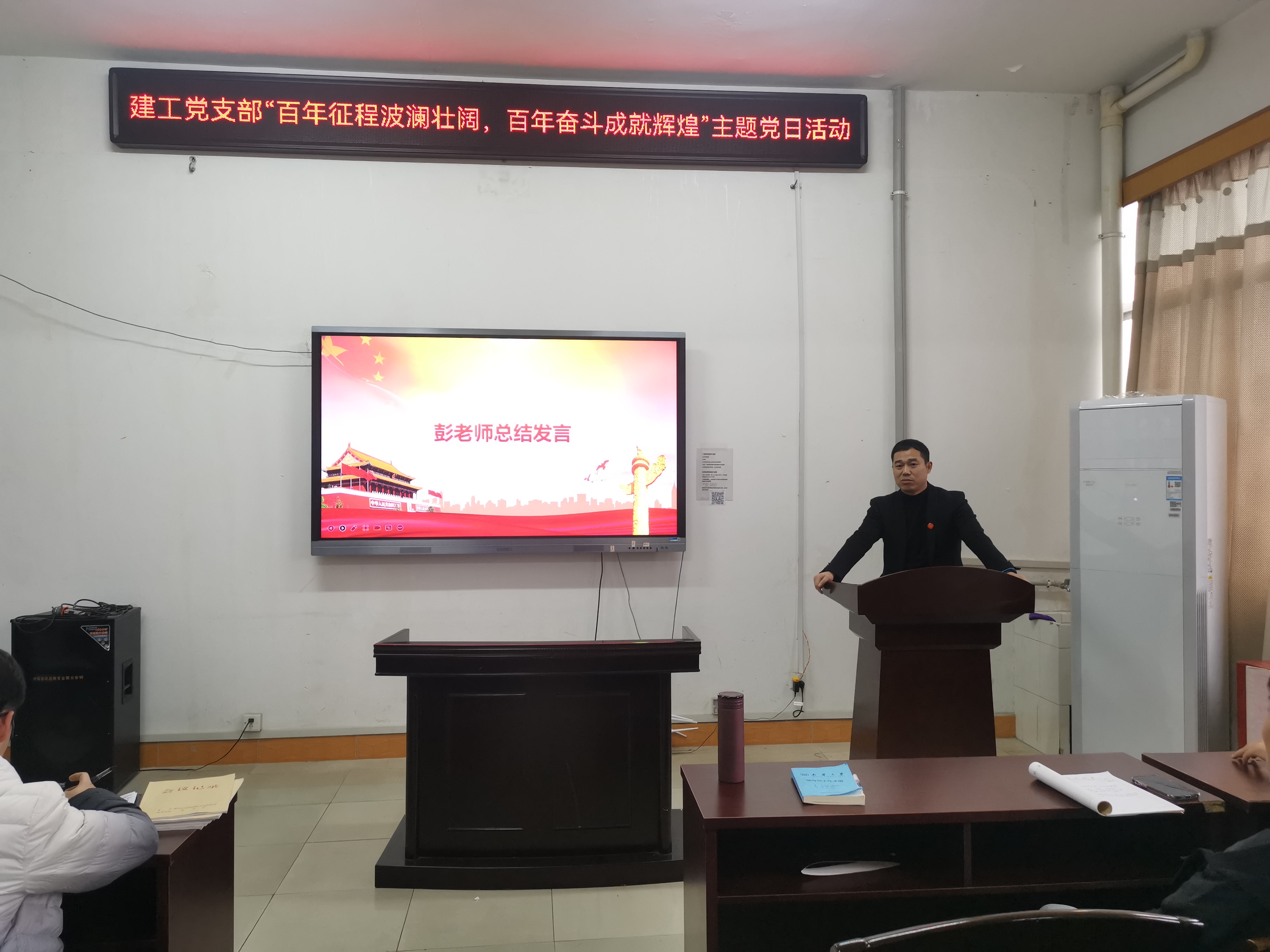 会议最后,支部书记彭兴明老师对会议进行总结。彭兴明老师说道:建党100周年,中国共产党慢慢的站起来了,我们年轻党员一代必须肩负起历史的伟大使命。希望员工党员同志们不负厚望。