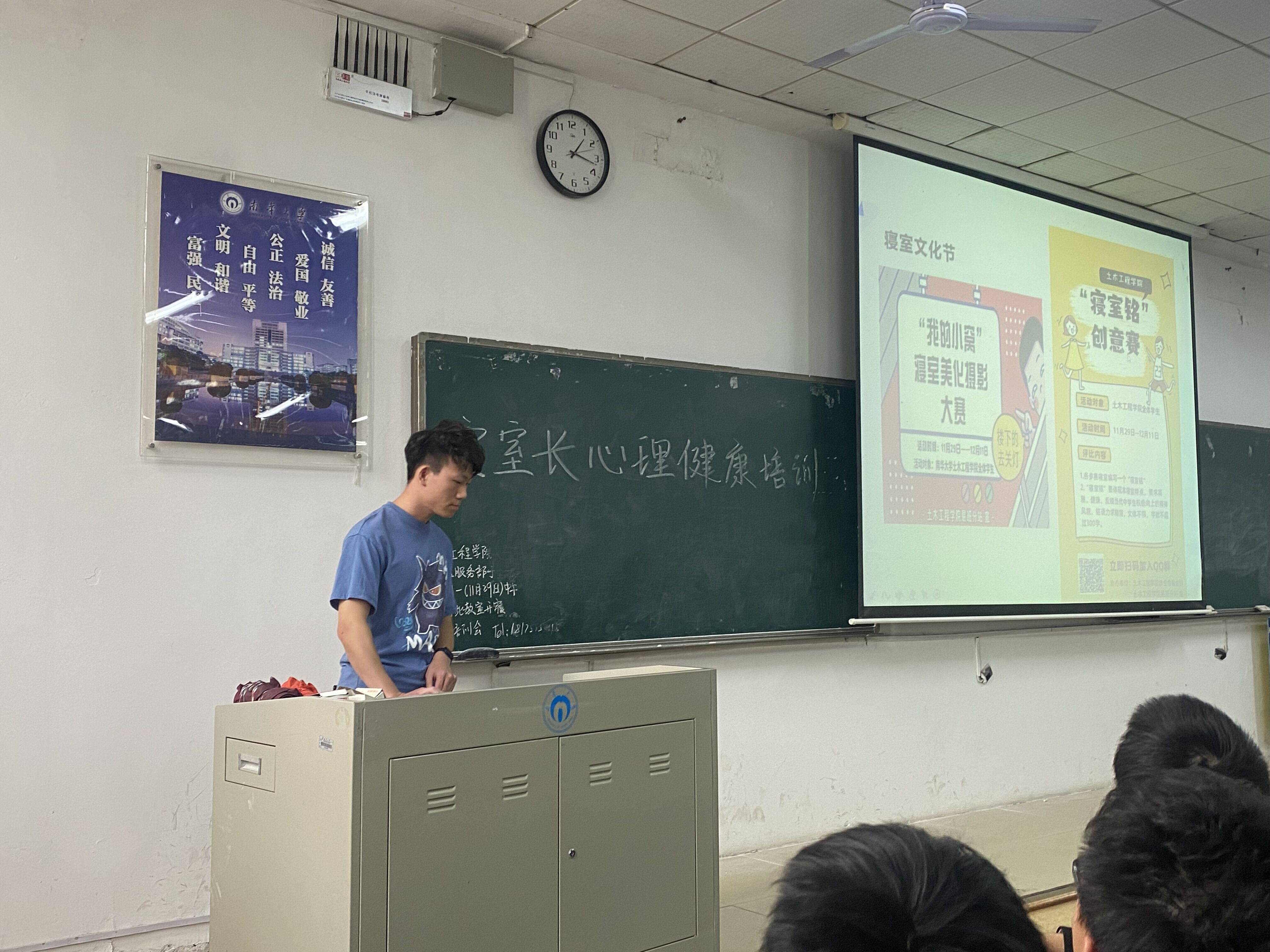 11月29日午12:30,MK体育寝室长心理健康培训暨教室、宿舍卫生培训会于一教111教室顺利开展,参加本次会议的有公司党委副书记唐素芝老师、学工室辅导员刘华老师及19、20、21级各班寝室长。