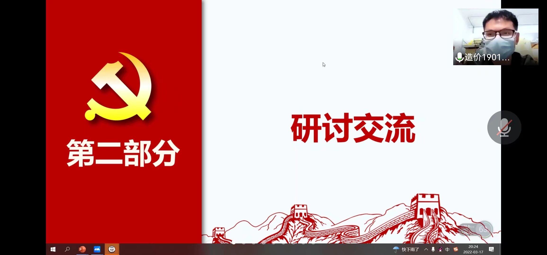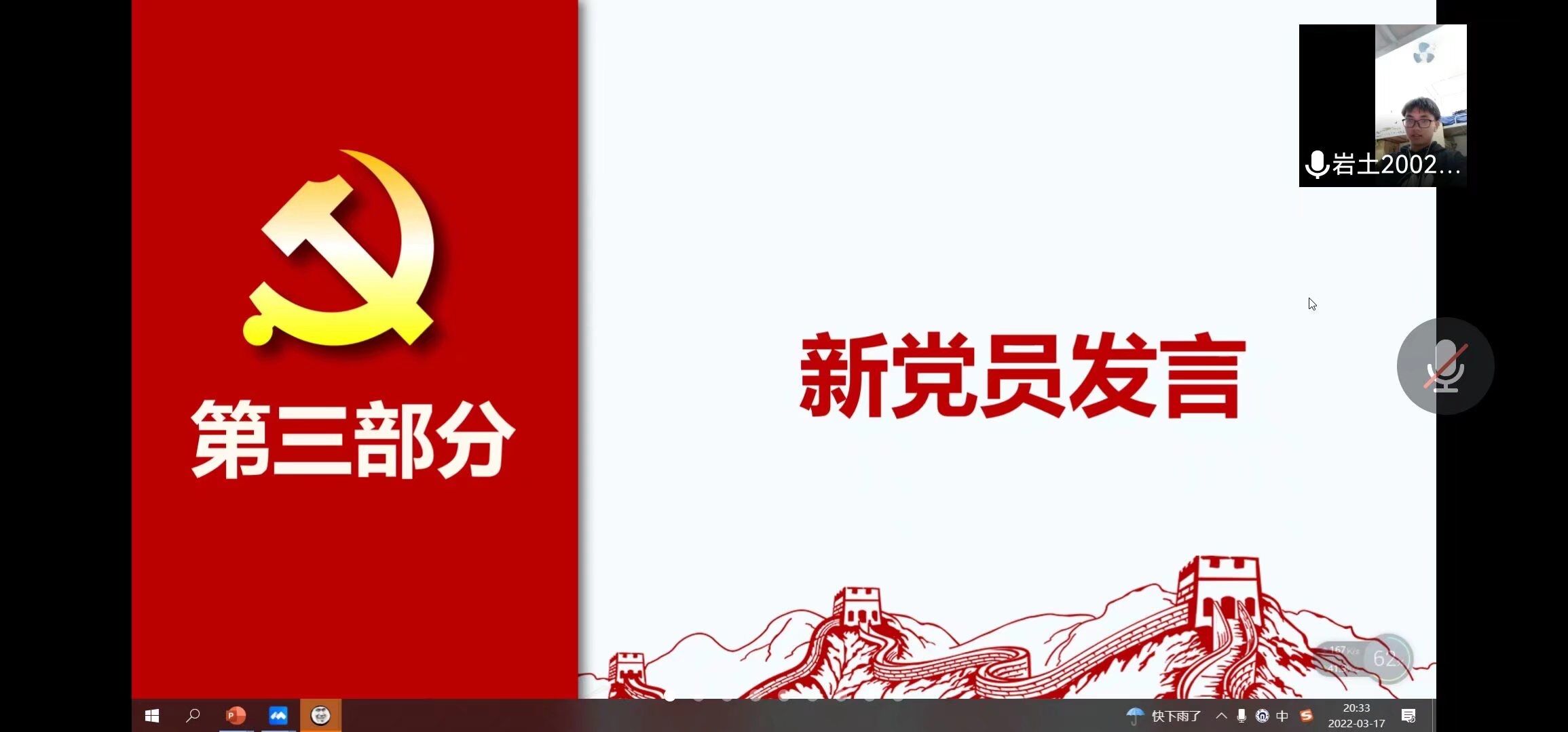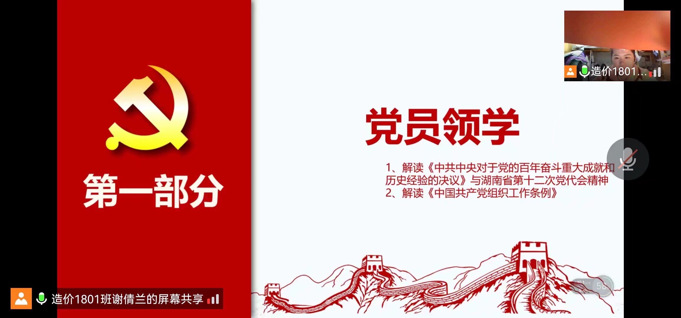 2022年3月17日19:30,MK体育岩土工程专业和工程造价专业员工党支部通过线上方式开展2021年度组织生活会会前集中学习研讨暨主题党日活动,活动由支部副书记谢倩兰同志主持,支部书记李翠新老师和全体党员参加。