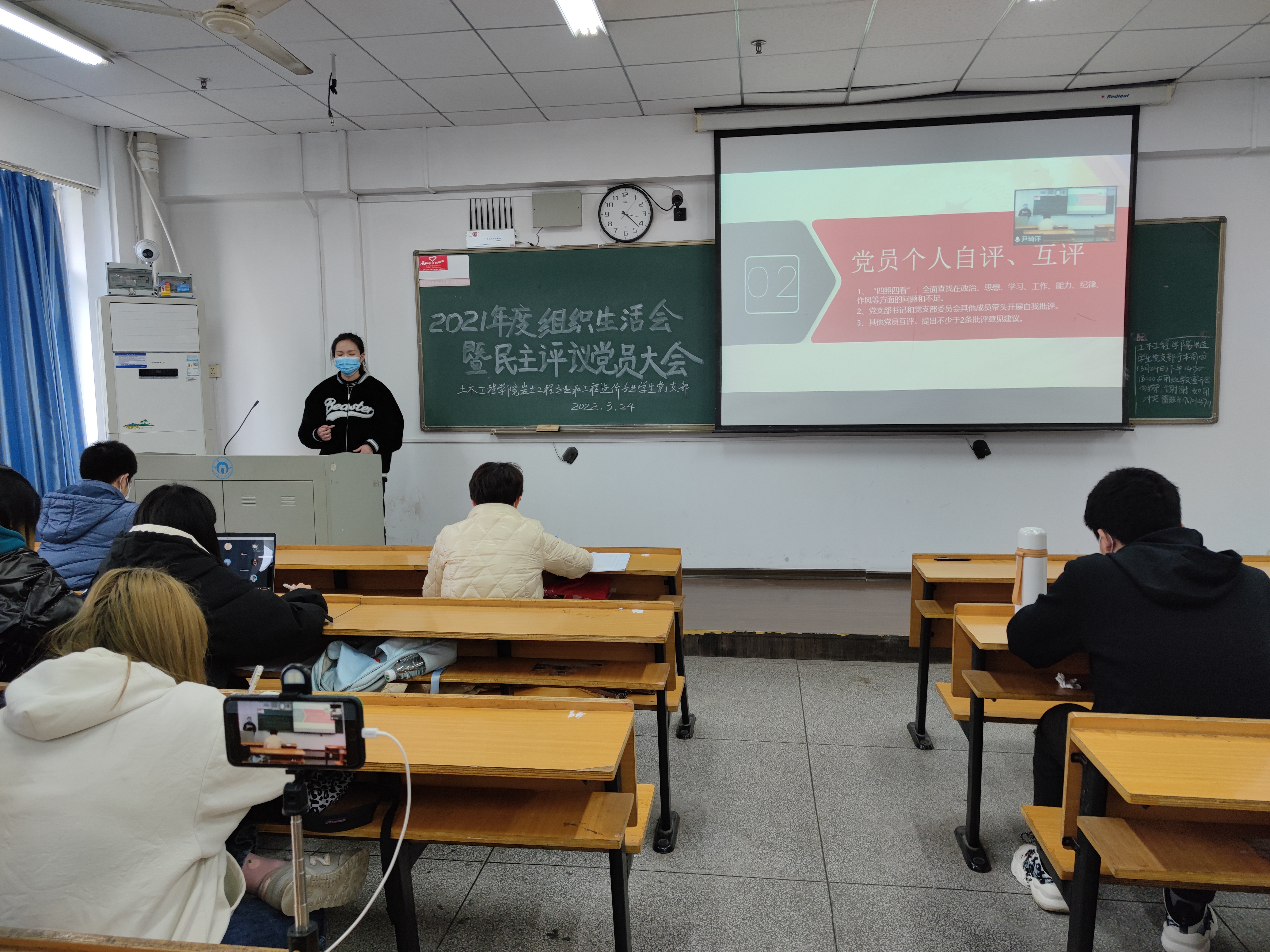 2022年3月24日14:30,MK体育岩土工程专业和工程造价专业员工党支部在一教402召开2021年度组织生活会,并开展民主评议党员工作。会议由支部书记李翠新老师主持,公司党委书记石建军老师到会指导点评,支部全体党员参加会议。