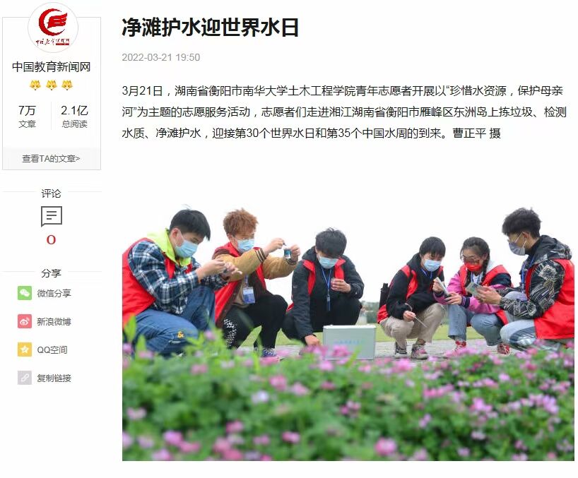 珍惜水资源,爱护水环境。本次活动响应了世界水日的号召,志愿者们以实际行动践行了节约水资源、保护水资源的精神,诠释了习近平总书记“青山绿水就是金山银山"的理念。同时,本次活动被多家媒体宣传报道,不仅提高了同学们对水资源关爱与保护意识,还让大家反思垃圾来源、反思生活方式,改善环境并提升自身价值。