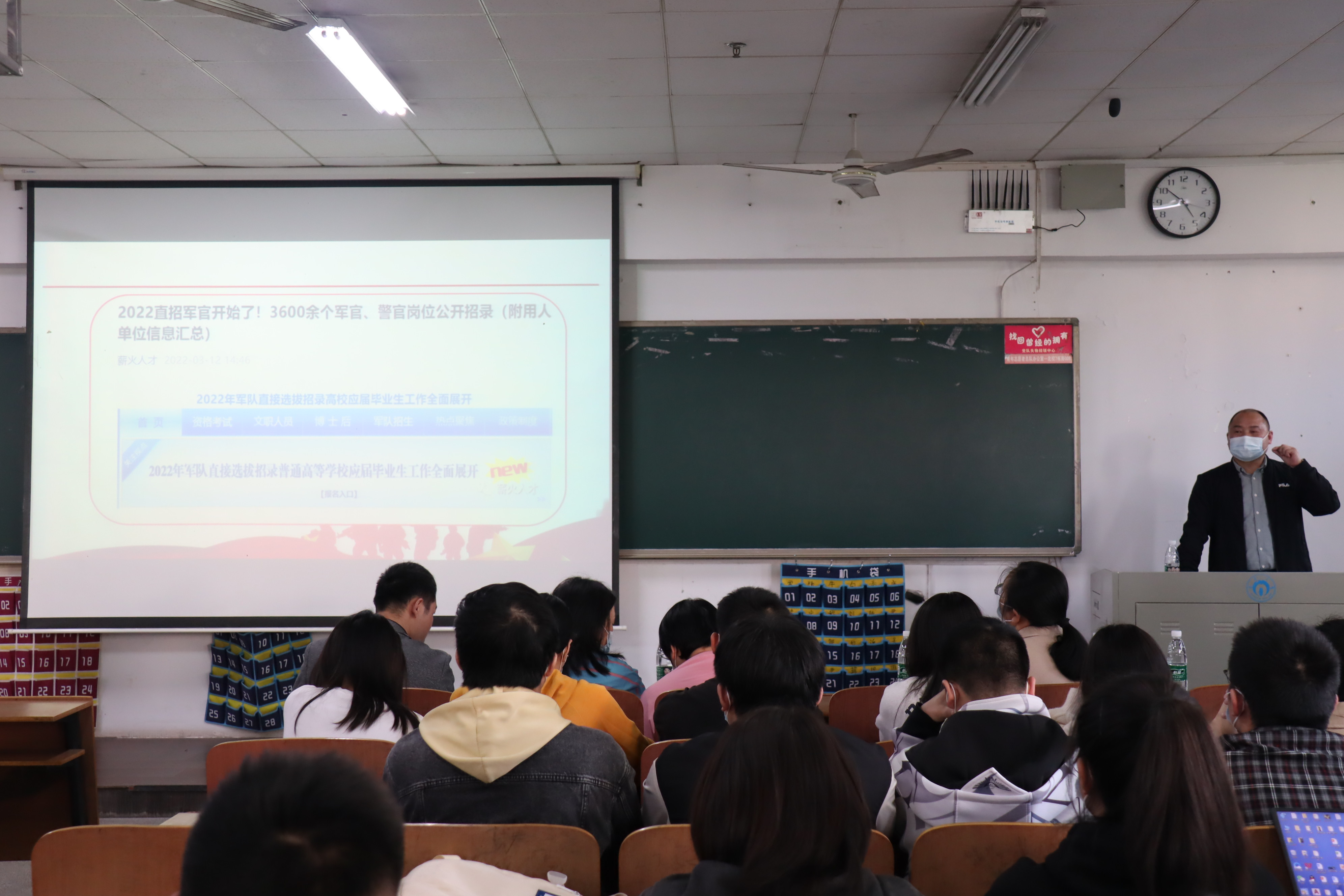 2022年4月5日下午四点半,mksport体育于南华楼212教室开展2022届毕业生就业工作暨征兵动员推进会。出席本次会议的有校武装部汪先利老师、公司党委副书记唐素芝老师、学工室全体辅导员老师、团委书记吴旦老师及18级各班员工代表。