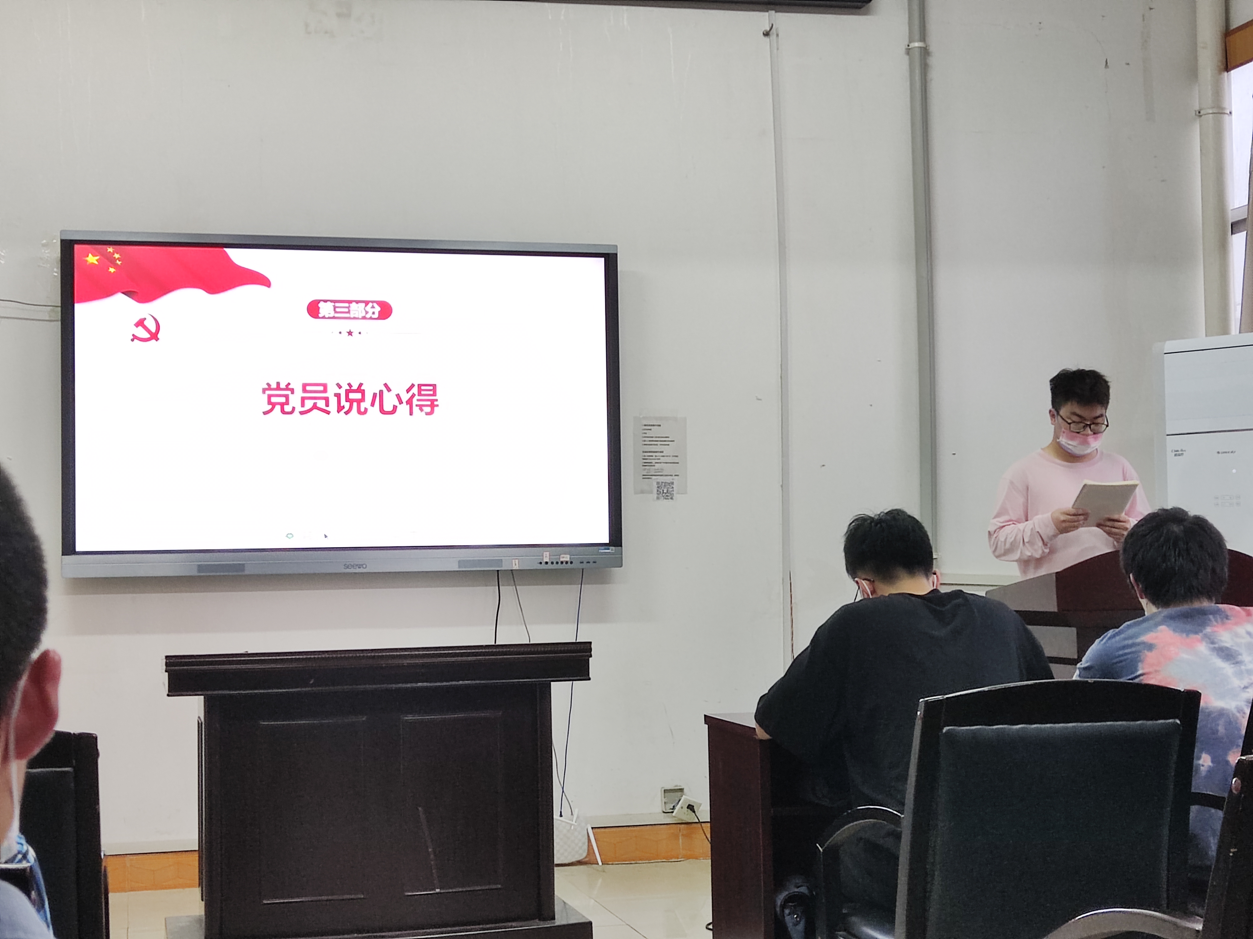 随后,全体党员一起观看了《国家安全保密宣传教育》视频,对国家安全的重要性和防范意识有了更深的认识。接着由傅麒澄、甘程华、李静和曾许聪同学依次上台分享了本次学习的心得,要遵守宪法,发现危害国家安全活动的线索及时报告,积极协助配合相关工作,共同维护国家安全。