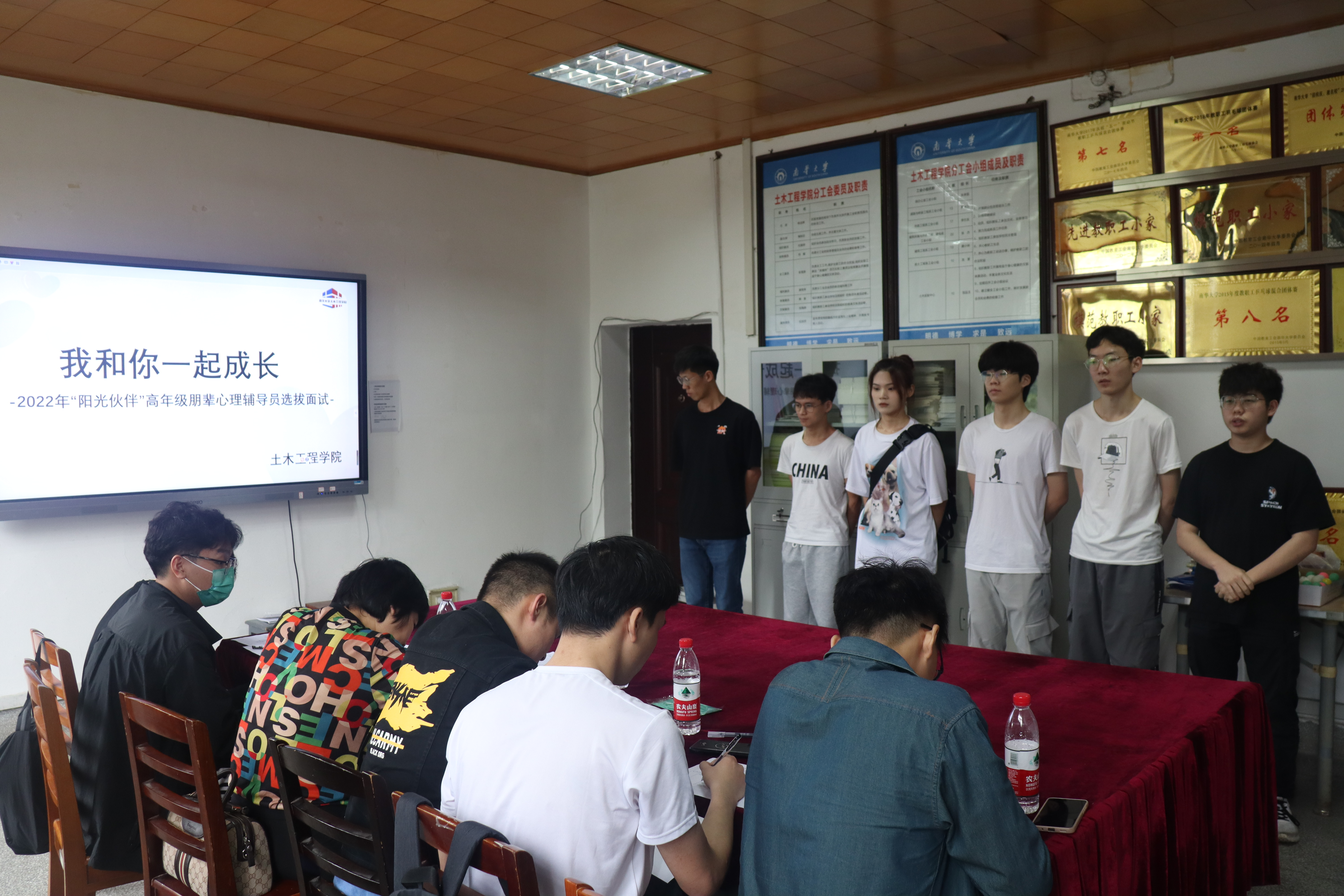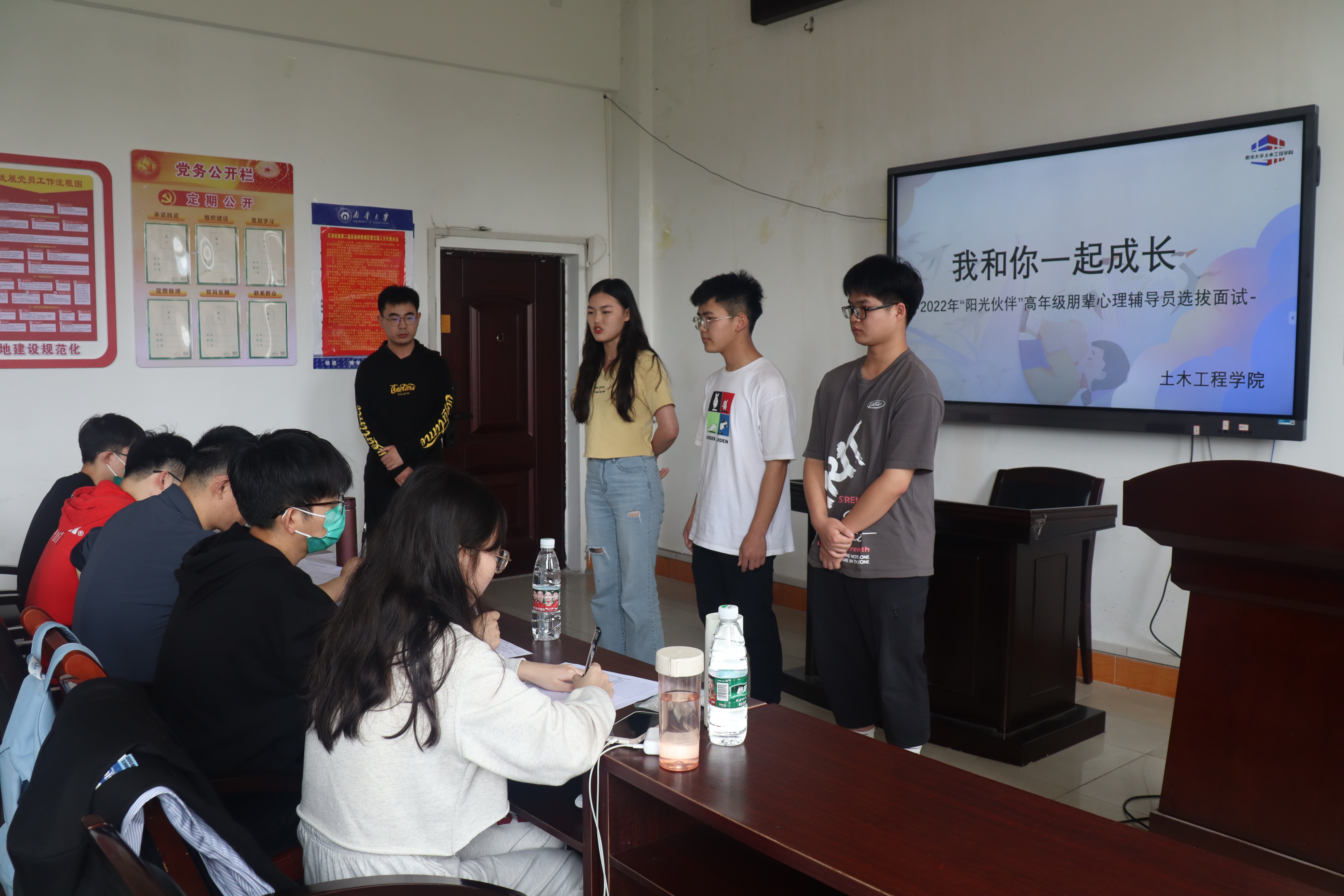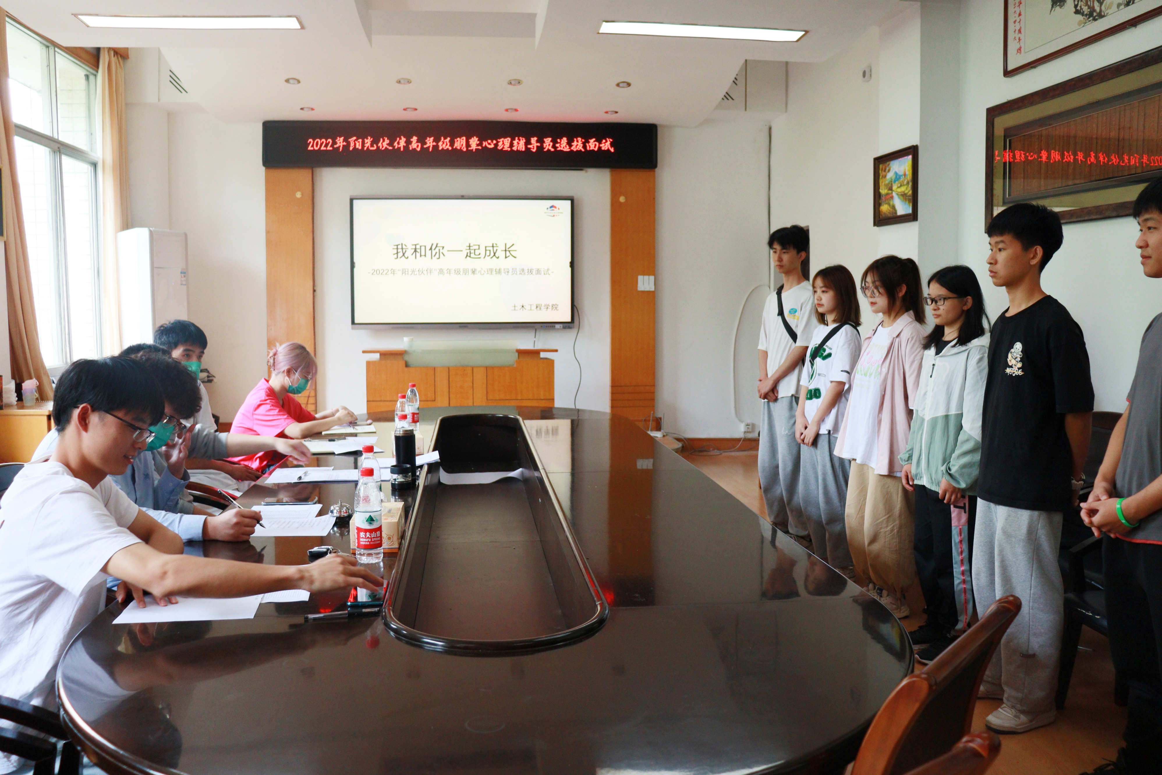 2022年5月26日,MK体育“阳光伙伴”高年级朋辈心理辅导员面试于土木楼顺利举行。学工室全体辅导员及部分班助代表参加了面试。
