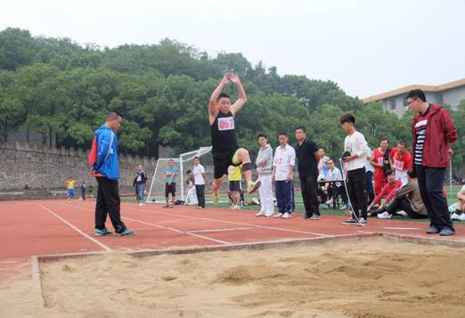 陶旺秋老师在上午的男子一百米比赛中获得第三名的好成绩,但是也不慎扭伤了脚。受伤后,他仍然坚持参加下午的跳远比赛,并且在比赛中发挥出色,获得男子乙组跳远比赛冠军。陶秋旺老师这种顽强拼搏精神,值得我们学习。