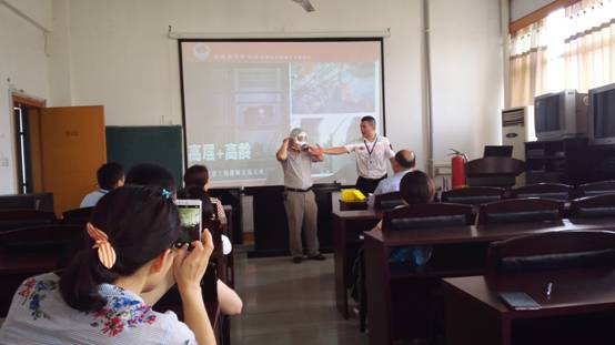 李教官讲解生动深刻,形式多样,案例典型、具有代表性。李教官主要说明了消防器具的分类及使用以及火灾的防范、自救知识。宁勇飞老师上台向大家示范了怎么使用防毒面具。通过培训,大家深刻认识到火灾的残酷与危害,意识到消防安全的重要与紧迫,增强了消防安全意识,提高了消防应急能力。