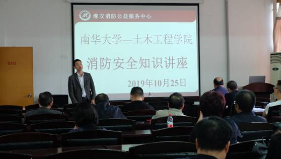 2019年10月25日下午4点30分,mksport体育在土木楼四楼会议室开展了以“珍爱生命,远离火灾”为主题的消防安全知识讲座,讲座由谢剑波教官主讲,土木公司全体教职工参加。