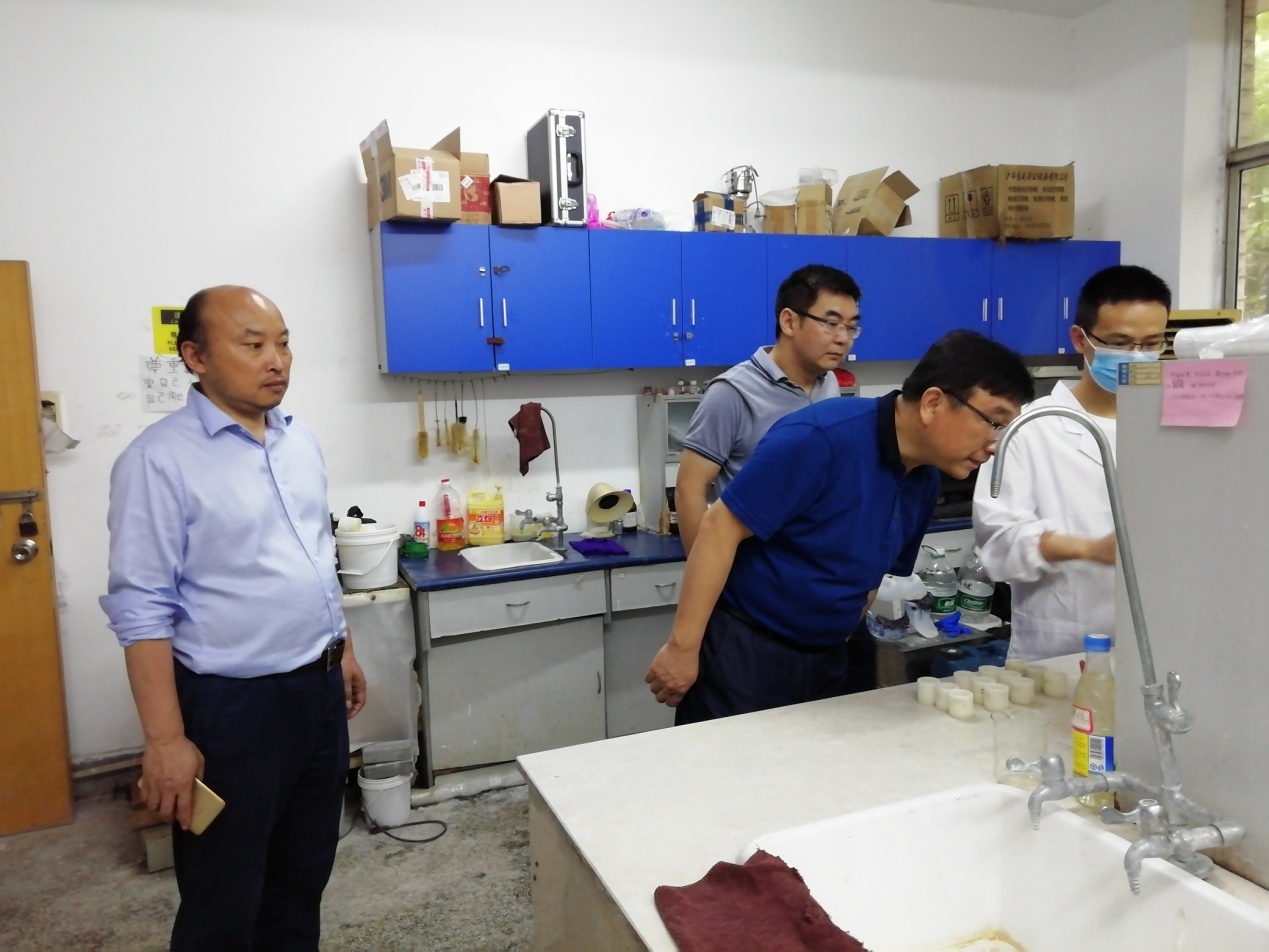 为迎接员工返校,做好疫情期间实验室准备工作,5月20日下午,公司党委委员、组织部部长于涛来公司检查实验室,走访各实验室,察看仪器设备,了解情况。公司书记陈振富、副经理(主持工作)谢东、土木工程实验中心主任张志恒,建筑环境与热能工程实验室主任熊军,市政环境实验室蔡萍莉老师陪同检查。