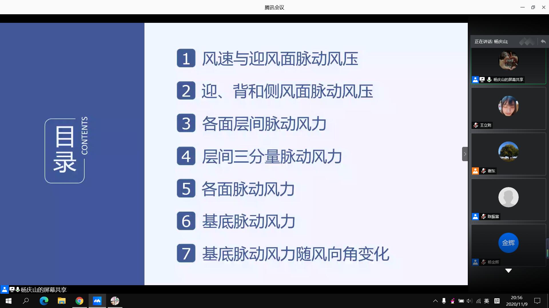 杨庆山教授的报告以《高层建筑风雅和风荷载特性》为题,首先介绍了本次课题研究背景,包括风灾频发、主要风敏感结构、结构风效应、风洞试验及技术路线等;其次,杨教授依次向大家介绍了风速与迎风面脉动风压,迎、背和侧风面脉动风压,各面层间脉动风力,层间三风量脉动风力,各面脉动风力,基底脉动风力及基底脉动风力随风向角变化七大方面的问题,内容生动详实。在本次学术交流会中,杨教授处理数据的能力更是让老师和同学们叹为观止,值得我们大家学习。最后,老师们与杨教授就风和地震共同作用的研究进展情况、风荷载是否有必要进行时程分析等问题展开了交流与讨论。会议结束后,同学们纷纷表示受益匪浅。