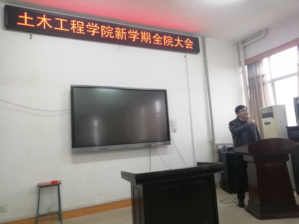 2月27日下午3点在公司三楼会议室,公司召开全院大会,陈振富书记主持会议,全体老师参加会议。陈书记转达公司处级干部大会精神,做好五个第一,即上好第一堂课、开好第一次班会、进行第一次卫生大扫除、开展第一次升旗仪式、进行第一次消防安全检查。谢东副经理指出今年的七项重点工作,如做好十四五规划、跟踪博士点申报和学科评估、高层次人才引进、开展一流专业建设及土木工程专业认证、召开土木学科员工论坛、加强系室建设等。其他院领导分别就分管工作发表讲话。