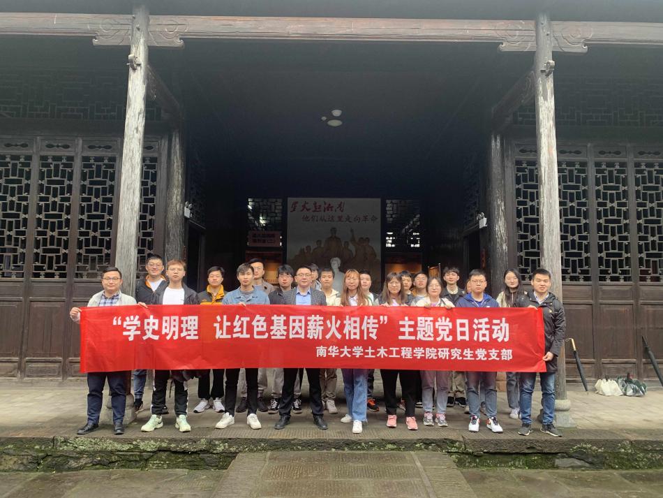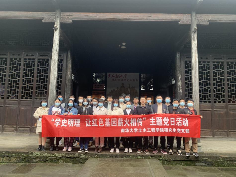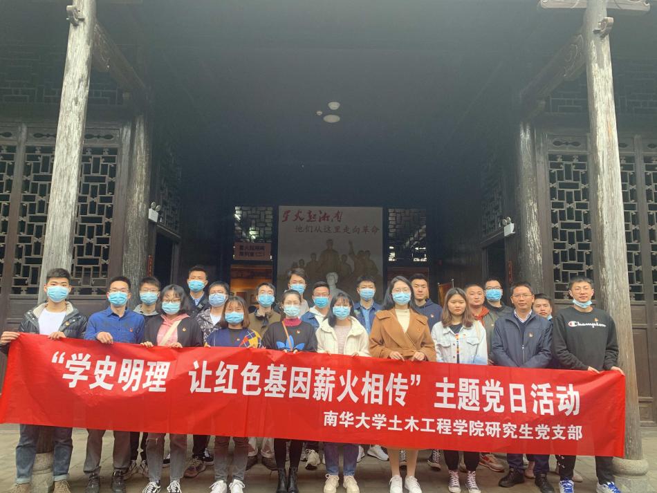 mksport体育各研究生党支部积极响应党的号召,于2021年4月11日组织所有研究生党员沿着毛泽东、夏明翰等革命先烈在衡阳的足迹来到了湘南学联旧址,开展了以“学史明理,让红色基因薪火相传”为主题的党日活动,缅怀革命先烈,铭记历史,以史为鉴,奋发图强,为中华民族的伟大复兴而努力奋斗。