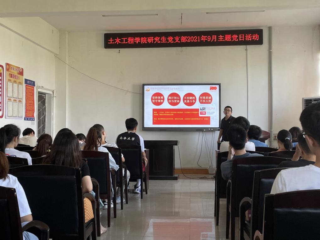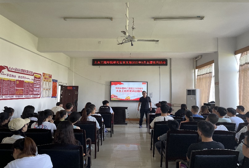 2021年9月26日下午,为庆祝中国共产党成立100周年,深入学习习近平新时代中国特色社会主义思想,增强全体党员责任意识和爱国情怀,MK体育研究生党支部全体党员于MK体育421开展以“学习贯彻中国共产党成立100周年大会重要讲话精神”为主题的党日活动,活动由支部书记陶秋旺老师主持,全体党员参加。