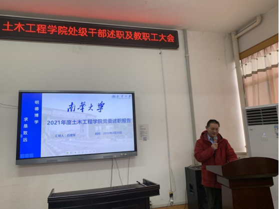2022年2月20日下午,在土木楼四楼会议室,处级领导干部考核和全体教职工大会如期举行。会议第一阶段由公司党委书记石建军主持。首先由公司组织部工作人员钱通华老师对本次处级干部内部述职工作进行了相关说明,石建军书记和谢东经理分别代表班子进行了党建和行政及个人述职。对公司党建工作和行政工作进行了认真全面地总结,并认真剖析了公司目前存在的问题与不足,同时,也明确了下一步目标和方向。之后,陈振富正处级组织员、唐素芝副书记、刘清副经理、曾涛涛副经理、孙冰副经理分别进行了个人述职述廉。最后石建军书记希望公司全体师生员工本着对组织负责、对公司负责、对同志负责、对自己负责的态度,客观、公正地对领导班子和个人在网络测评中做出评价,正确行使自己的民主权利。