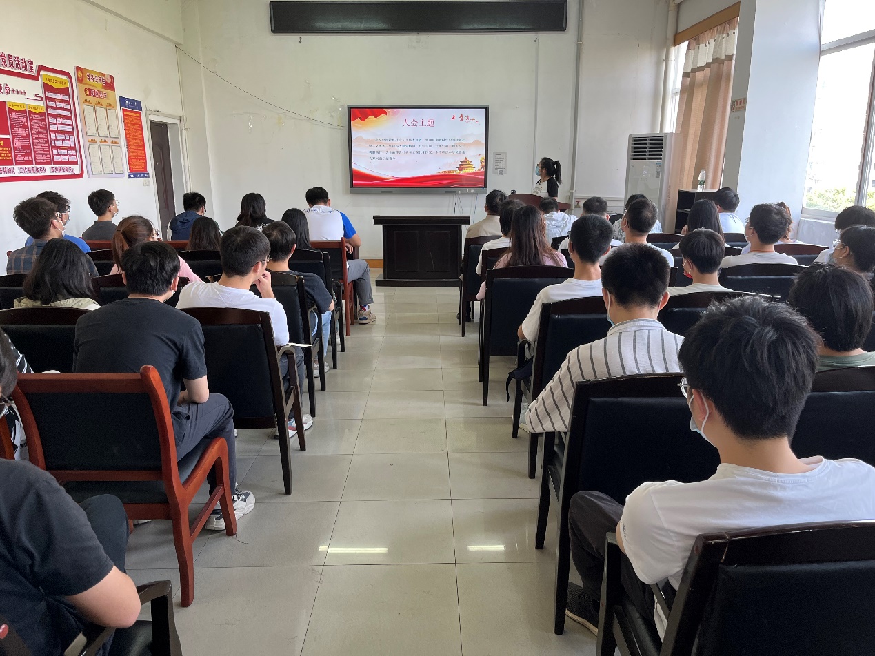 活动第一部分,全体党员同志观看了《二十大金句报告》、《我们这十年——中国跨度》、《中国式现代化》和《二十大报告——致中国青年》视频。视频强调了二十大报告重要思想,回顾了十年中国现代化建设中的每一个书写奇迹的跨越瞬间,系统深入地阐述了中国式现代化的科学内涵以及对中国青年的殷切期望。