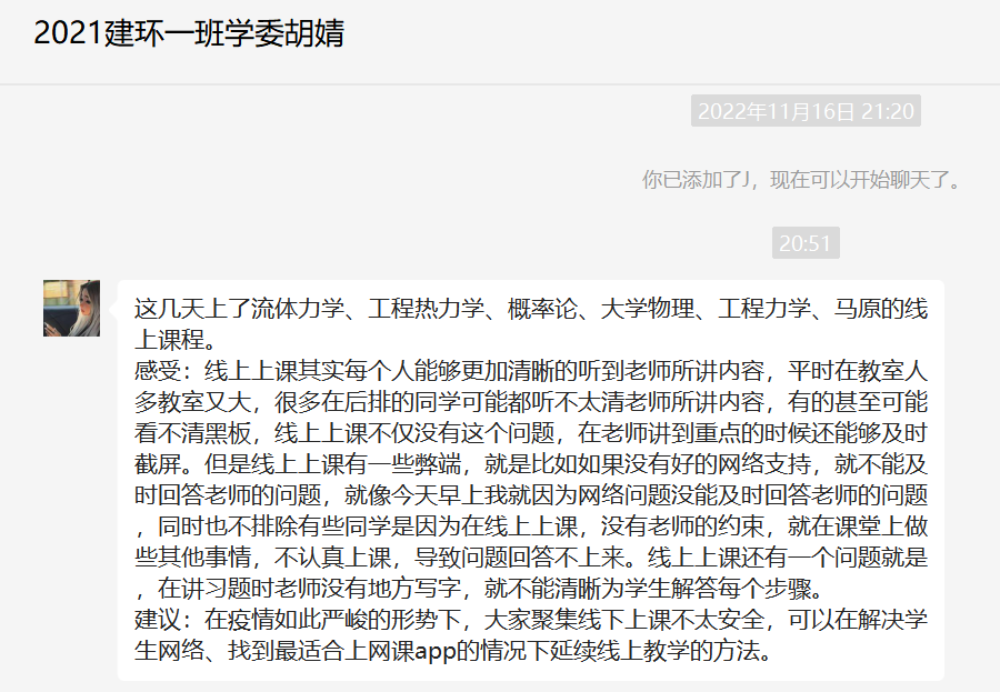 4、建议:老师打开摄像头,以便看清表情对知识加以更好的理解;建议:在疫情如此严峻的形势下,大家聚集线下上课不太安全,可以在解决员工网络、找到最适合上网课app的情况下延续线上教学的方法。