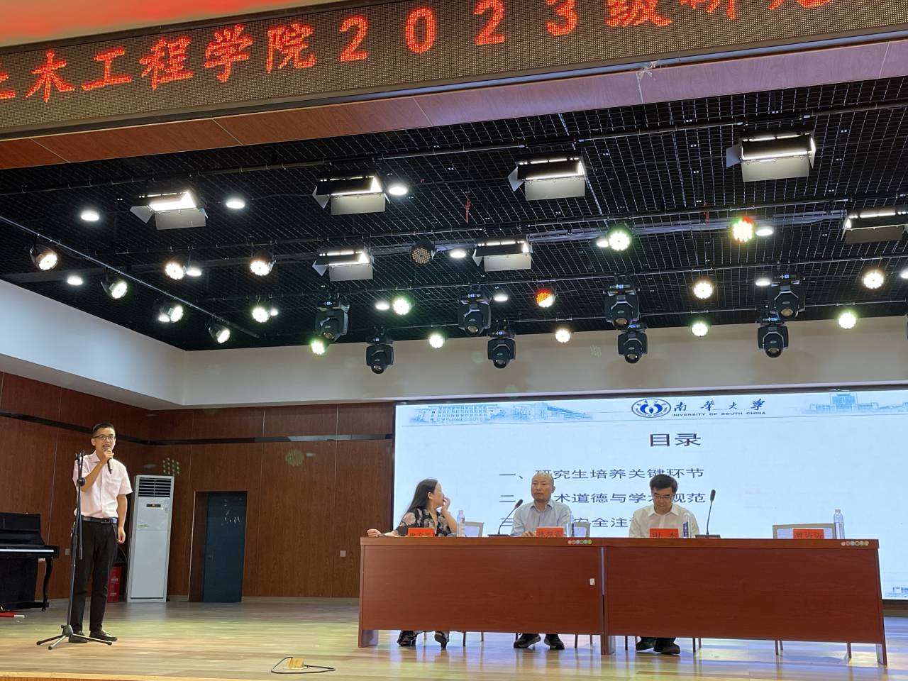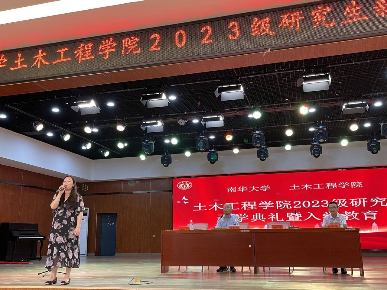 伴随着壮烈的国歌奏响,开学典礼正式开始。谢东经理热情欢迎125位新生加入这个大家庭,并向他们介绍了公司的团队力量和科研平台。他向新生们传递了“真、新、恒”三个字,表达了他对同学们的期望:要追求真正的知识和学问,要拥有创新的思维方式,寻找新的科学方法和工具来解决新的问题,遇到困难时要坚持不懈、勇往直前。他希望新生们能够发扬土木学科精神,踏实学习,勇于承担困难和挑战,并以“强国有我,我是南华土木人”激励大家。